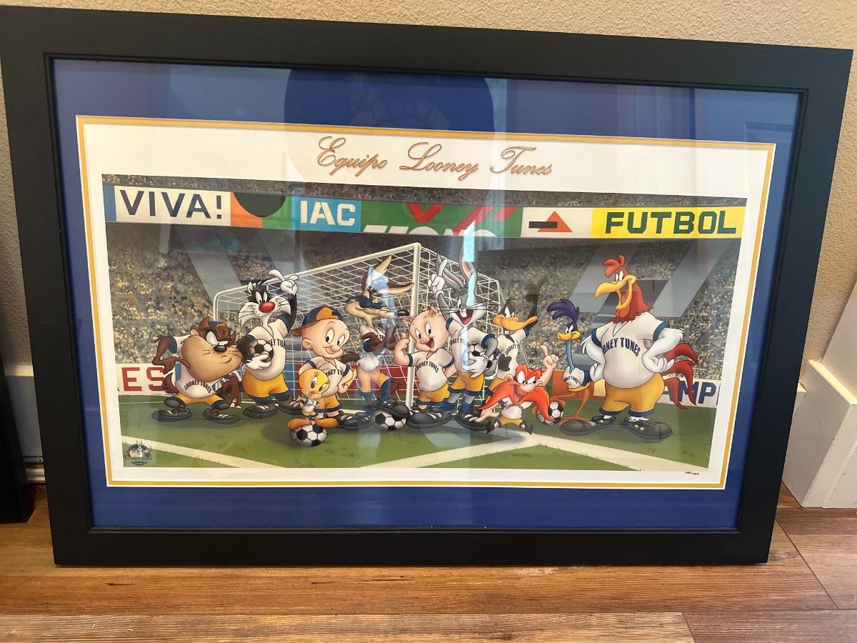 Warner Bros Equipo Looney Tunes Futbol Soccer World Cup Litho Art 32.5" x 18"