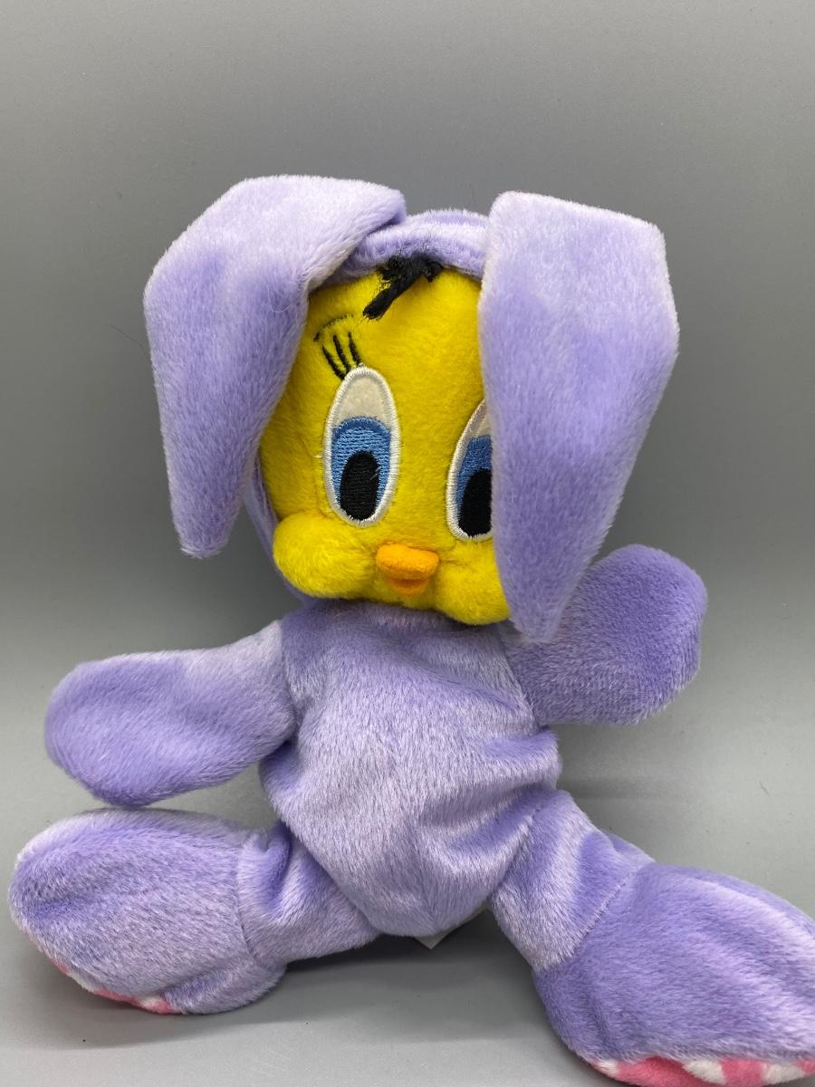 Tweety Bird wearing Easter bunny costume plushie. Warner Bros officially licensed. In good condition. Under 8" size.