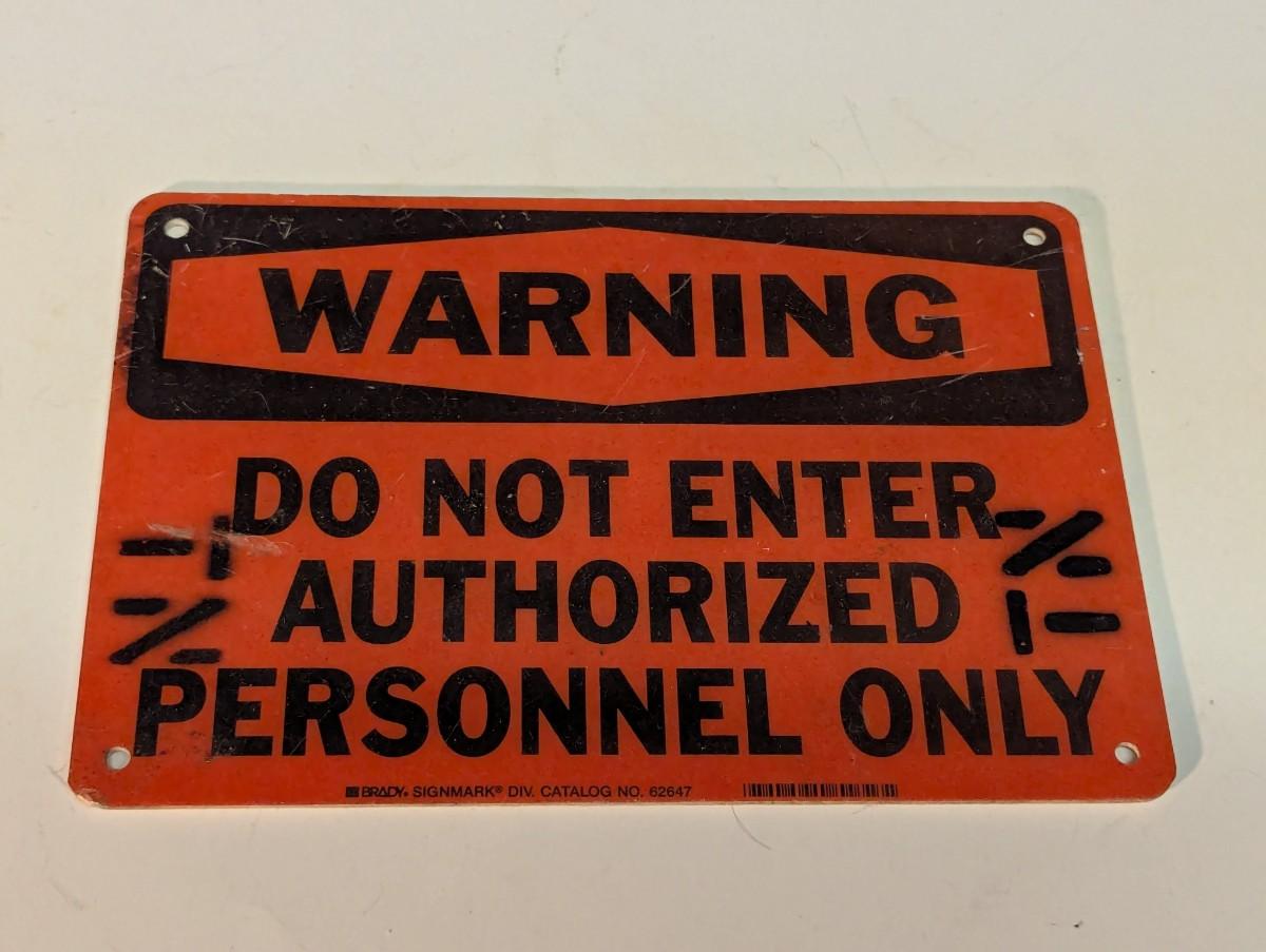 10" x 7" Warning Do Not Enter Authorized Personnel Only Sign