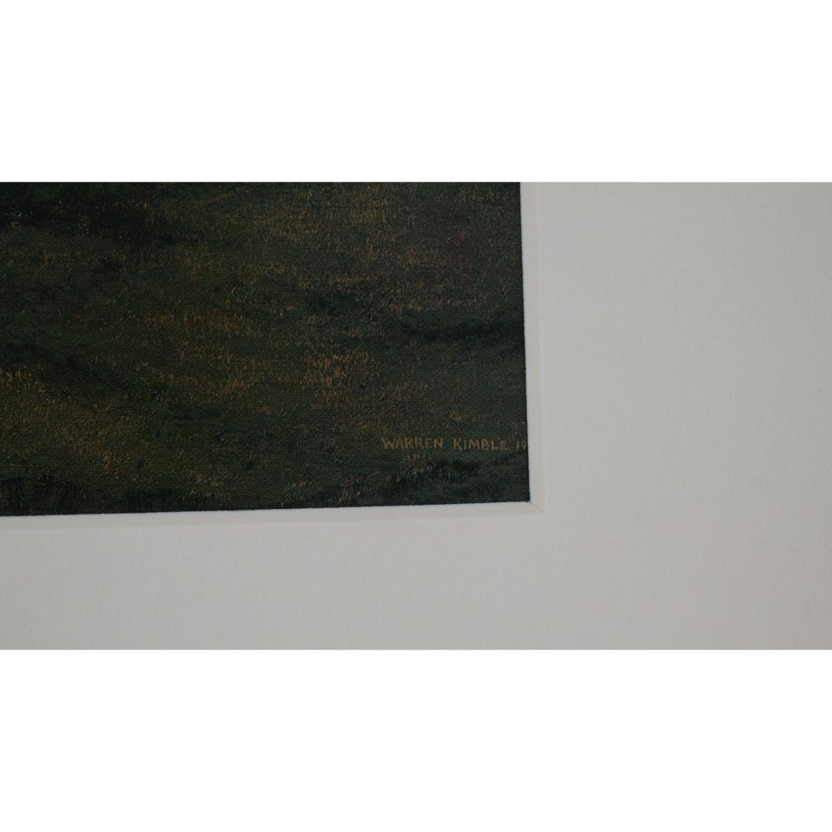 Vintage print of Warren Kimble's folk art sheep painting, 1990. Has matte attached, but no frame. Excellent condition. Artwork measures 6.75" x 4.75", matte totals 10.75" x 8.75". Weighs 8 oz. (A6)