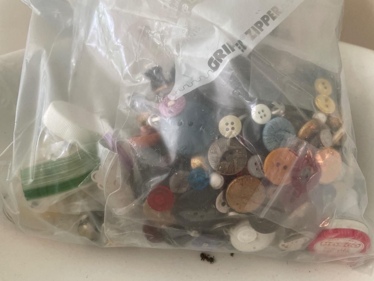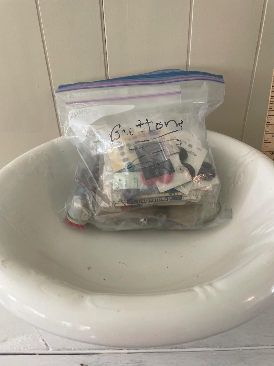 Wash basin and bag of buttons
