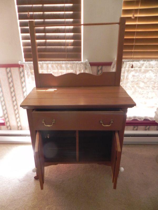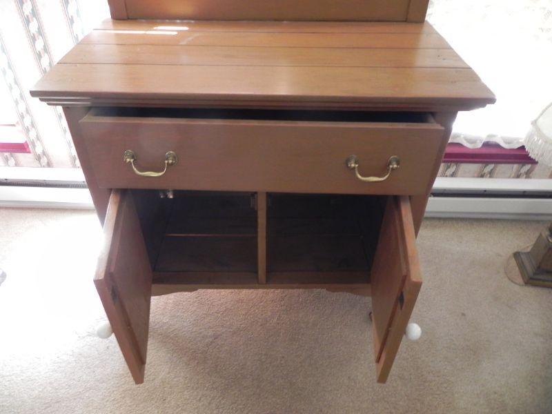 DOUBLE DOOR CABINET FOR STORAGE AND 1 DRAWER THAT DOESN'T HAVE ANY GLIDES MAKING IT A BIT SLOPPY TO OPEN AND CLOSE