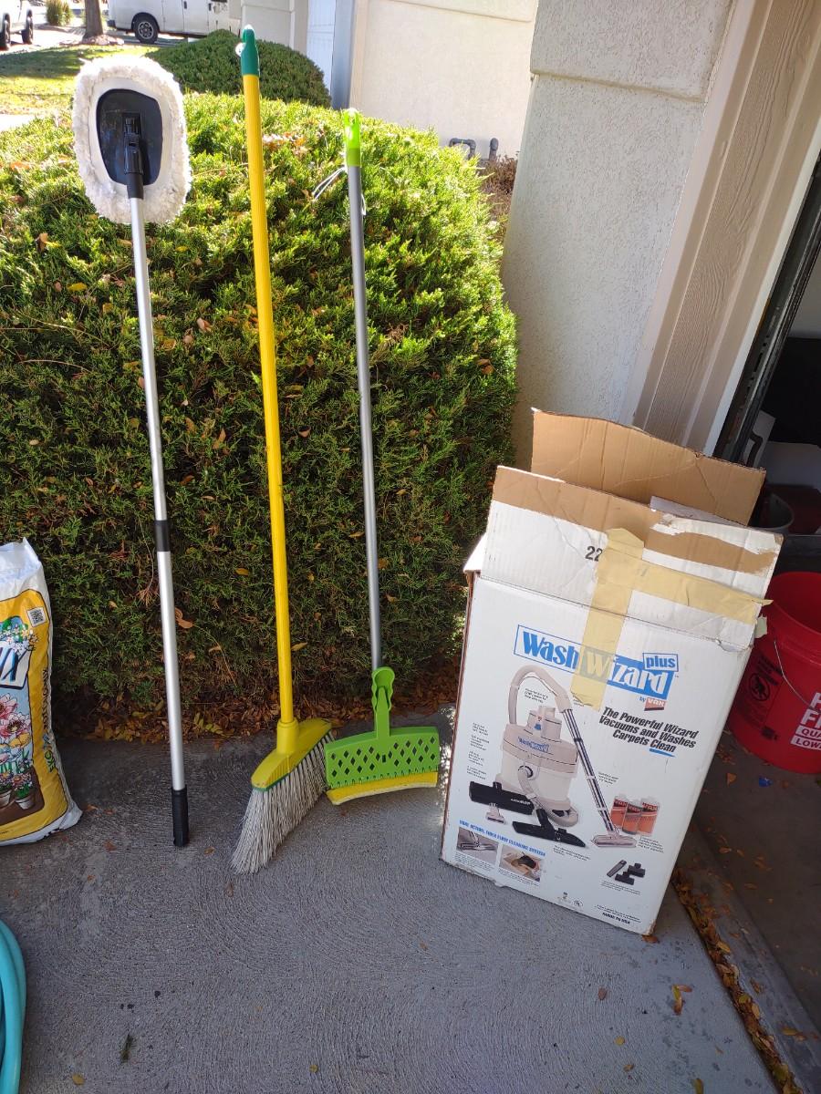 WASH WIZARD CARPET CLEANER AND VACUUM PLUS MOPS AND BROOM