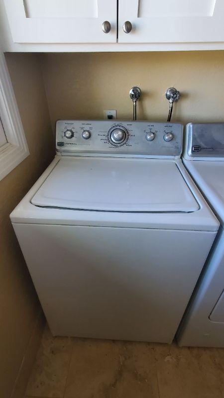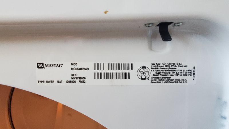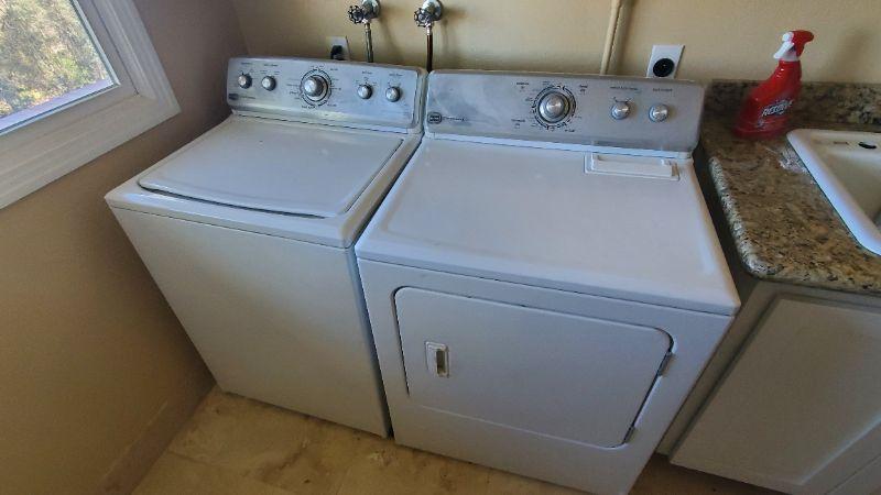 Washer Maytag: Model MVWC6ESWWI Dryer Maytag: Model MGDC400VW0 Both are L 2' 6 1/2" x W 2' 3" x H 3' 7 1/2"