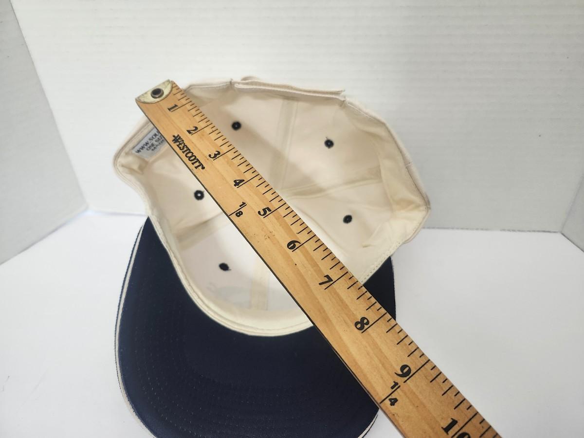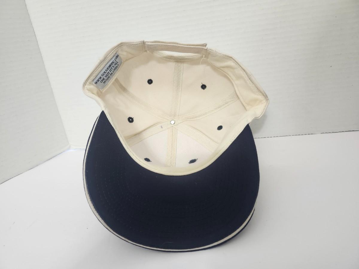 Washington DC travel souvenir strapback baseball cap featuring an embroidered Capitol building patch reading The Nation’s Capital Washington DC USA. Cream crown with a contrasting navy blue brim for a classic, clean look. Adjustable strapback closure provides an easy, comfortable fit. Ideal as a travel souvenir, casual everyday hat, or Washington DC keepsake. Traditional curved brim style suitable for both men and women.
