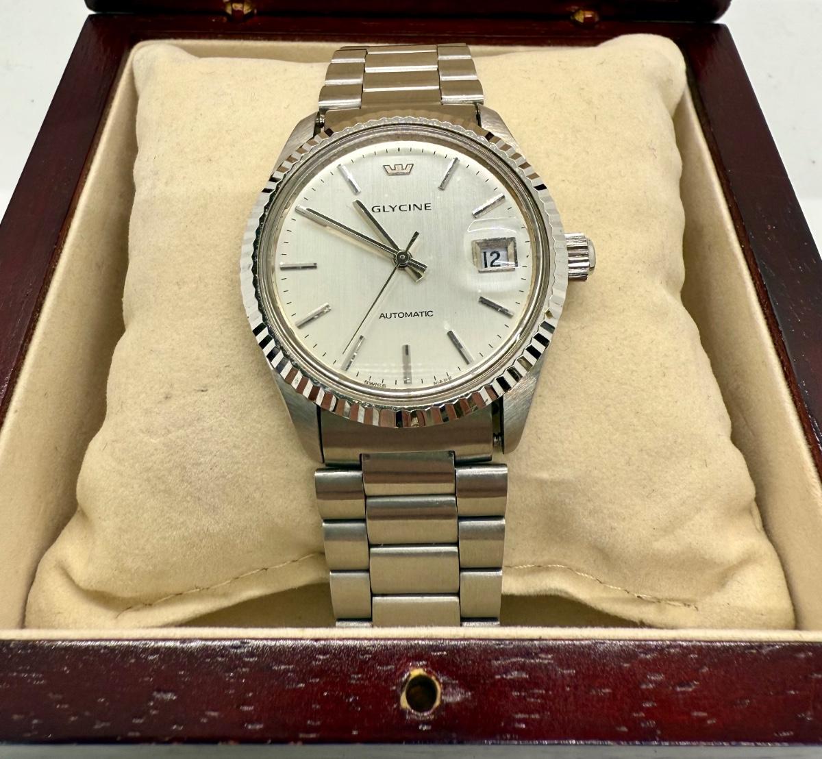 Mens Vintage GLYCINE Date Adjust Automatic Stainless Steel Watch