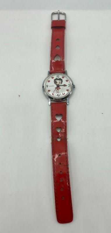 Quartz watch with Betty Boop image on dial. Parts made in Japan, watch case from Hong Kong, produced in 1989.