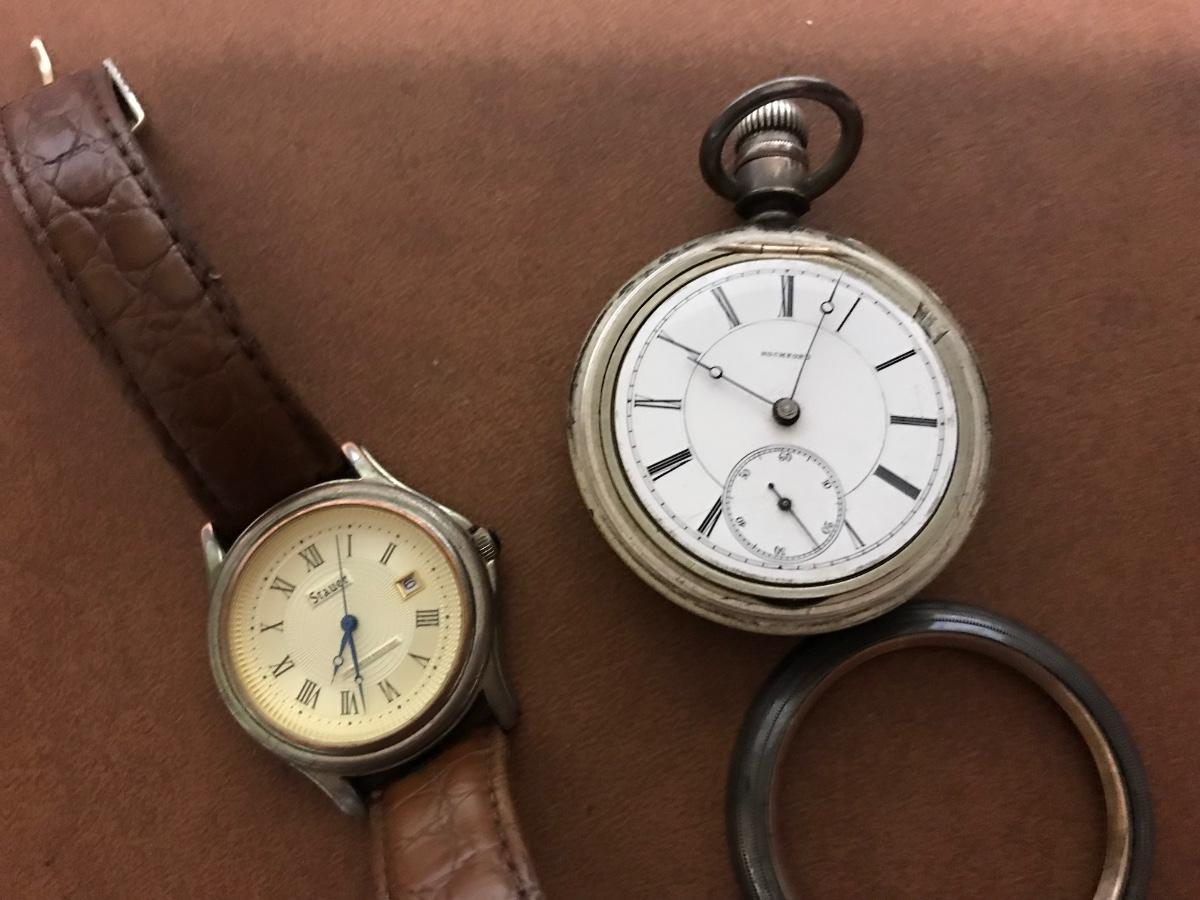 Antique coin silver pocket watch and another
