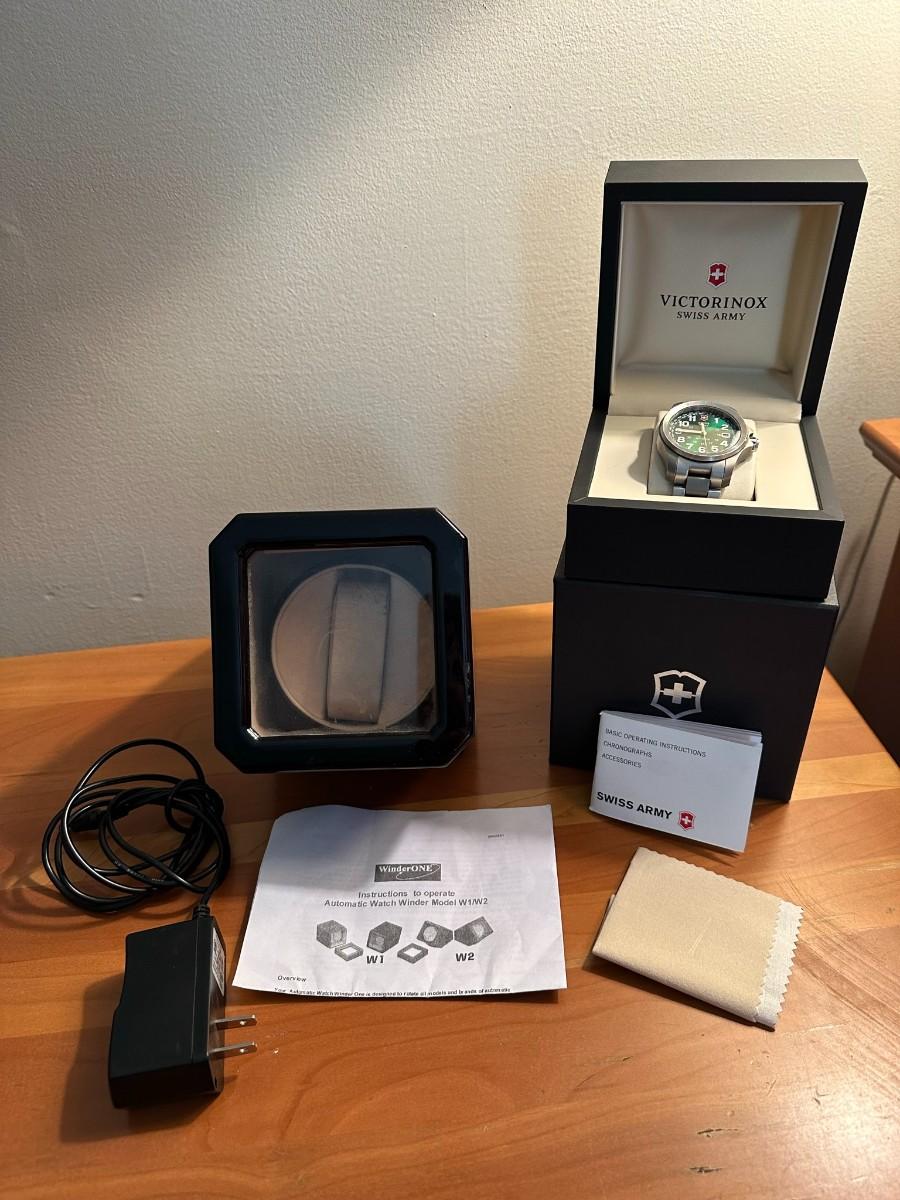 Victorinox Swiss Army Automatic Watch with box & instructions, WinderOne automatic watch winder with AC adapter, can also be used with "AA" batteries
