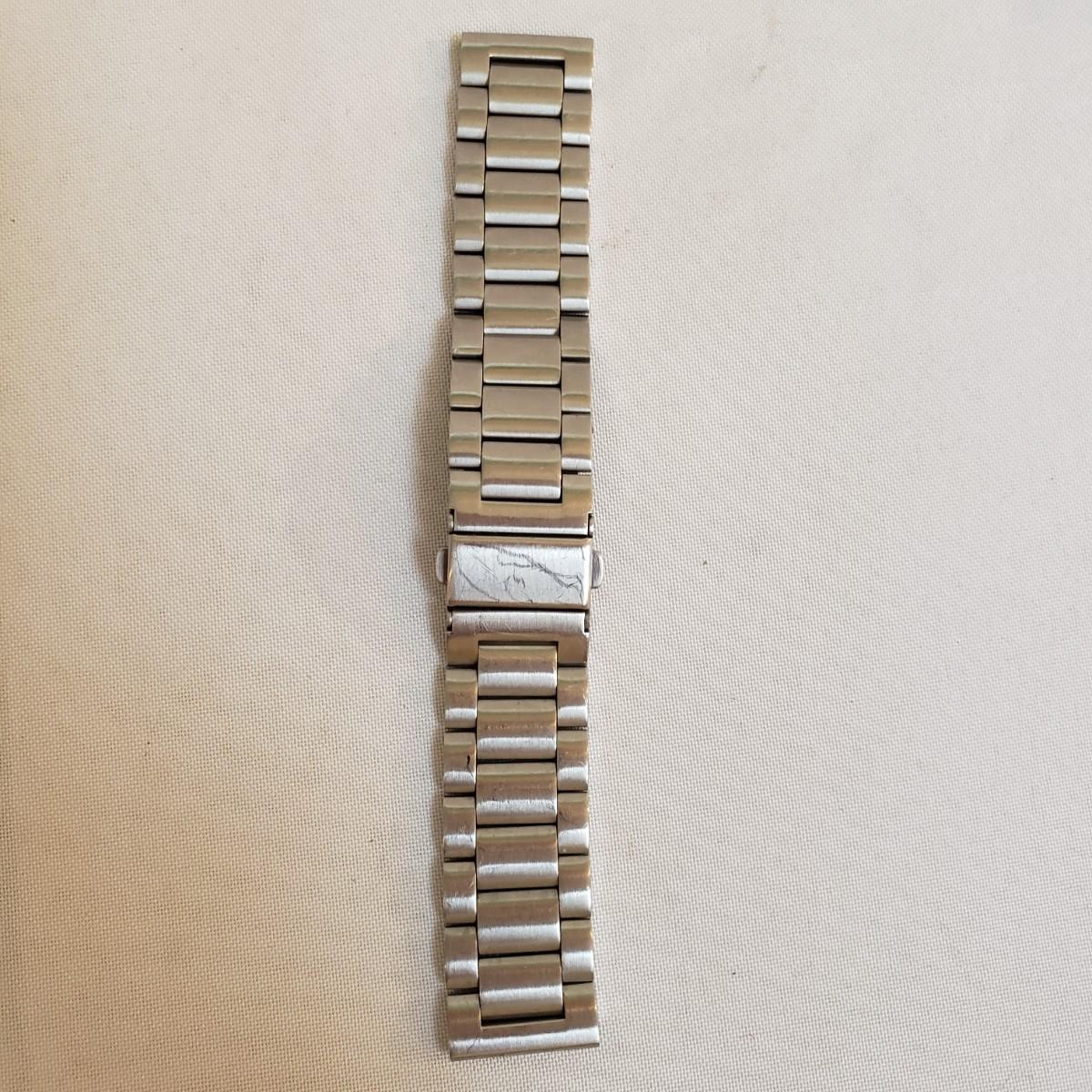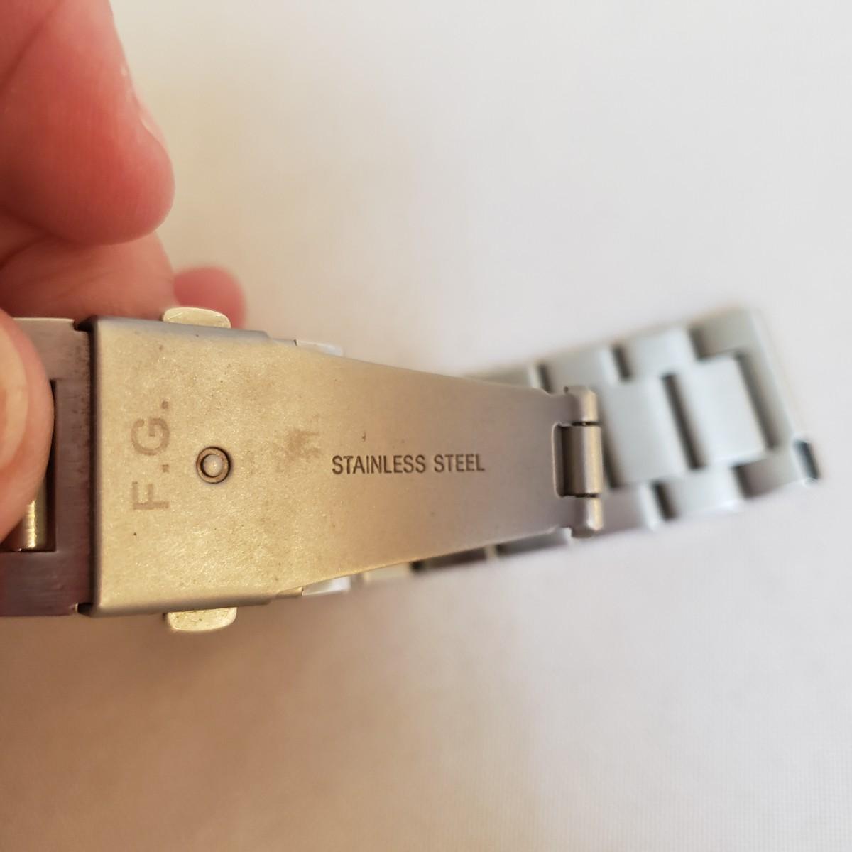 This lot contains two stainless steel men's watch bands, both are approximately 6" long. The FG wrist band comes with a bag of extra links, see picture.