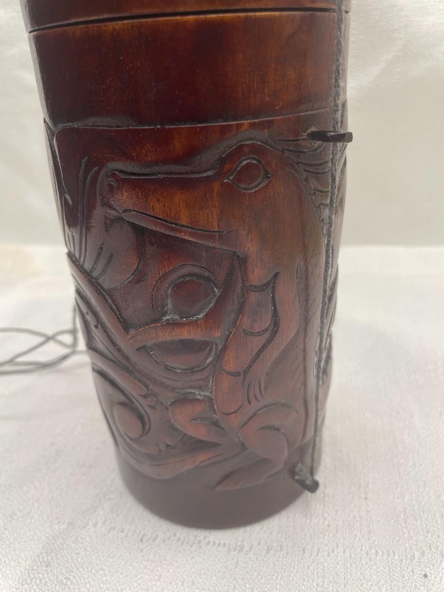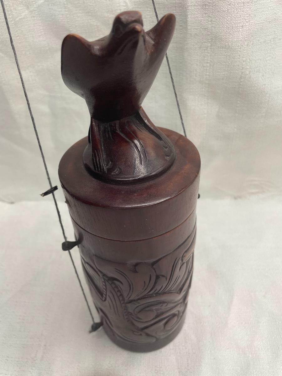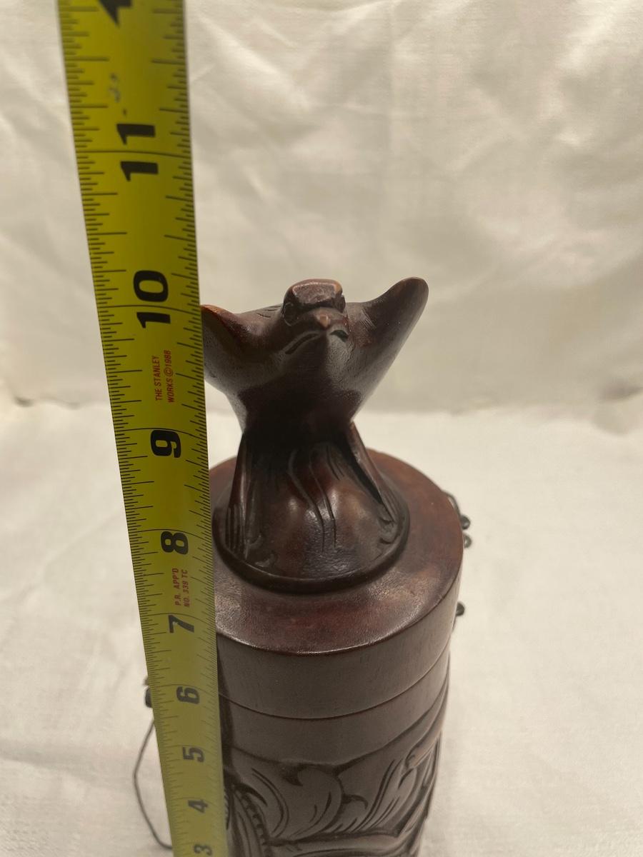 Beautifully crafted container. Could it be a travel tea/tobacco container? Use it as you wish!
