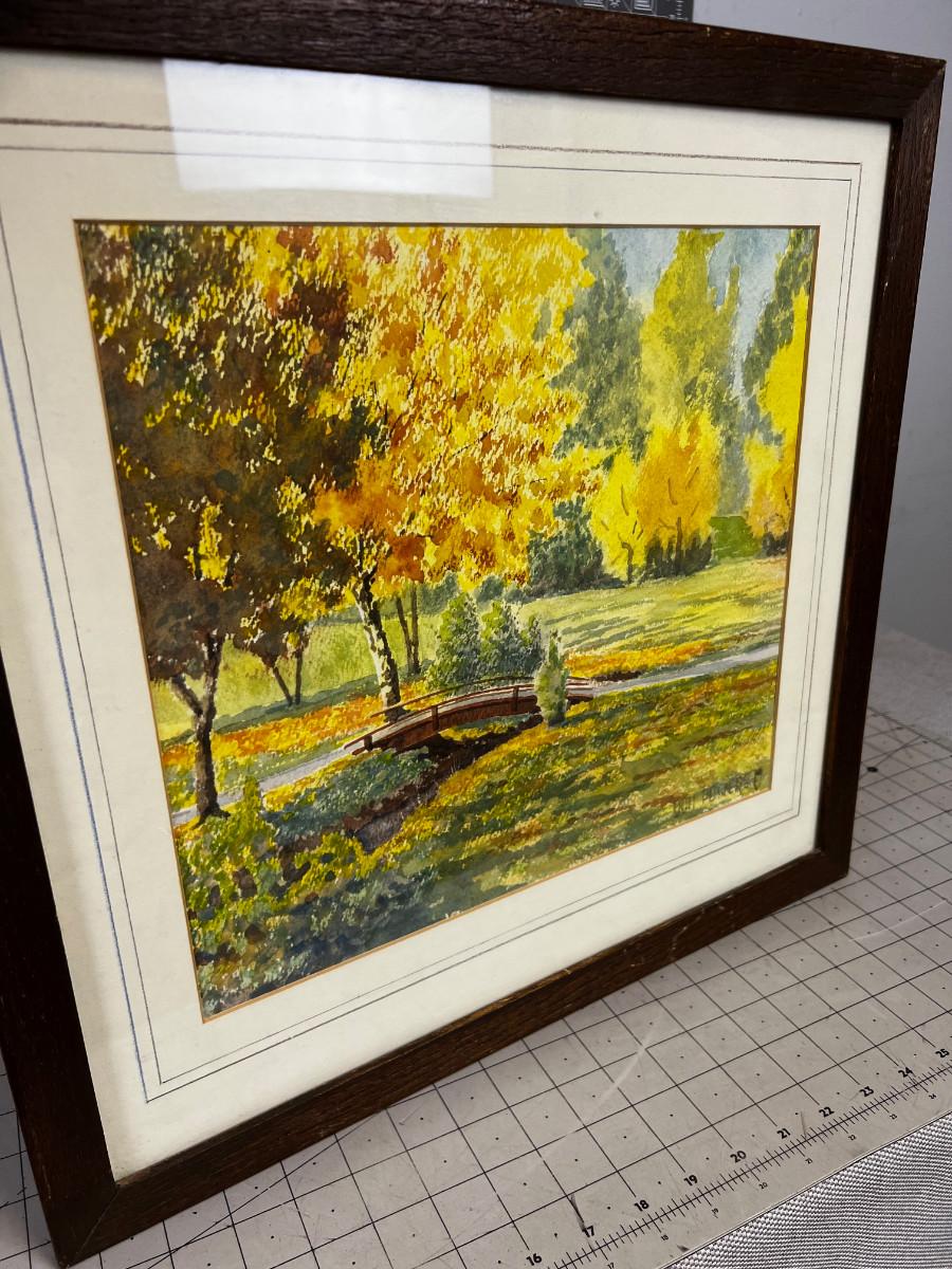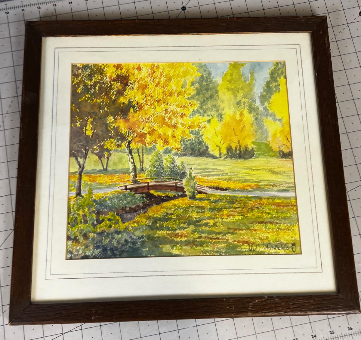 Water Color by Don Powers Bridge in a Fall Meadow