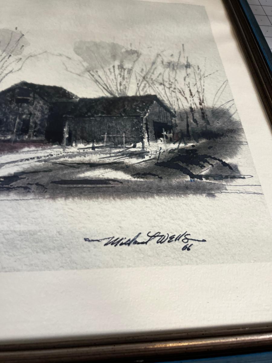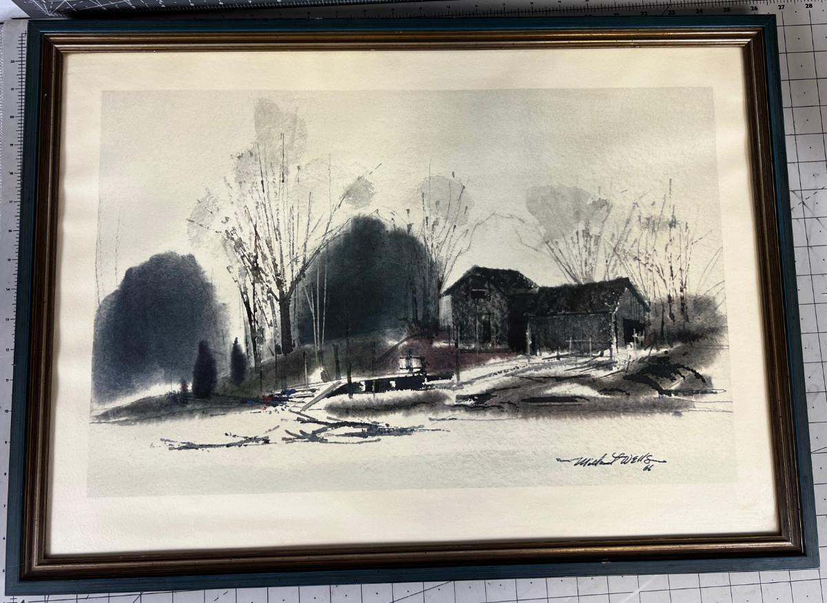 Water Color, by Michael Wells Dated 1966 Homestead of House/Barn
