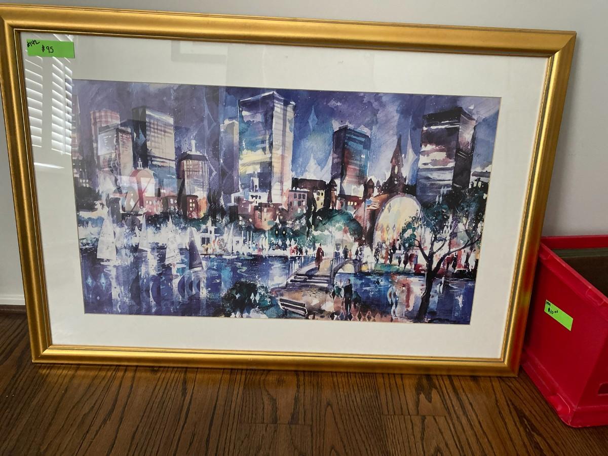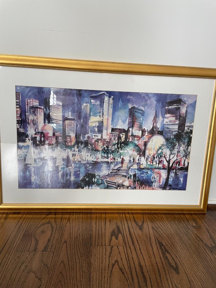 Beautiful watercolor art in gold frame.