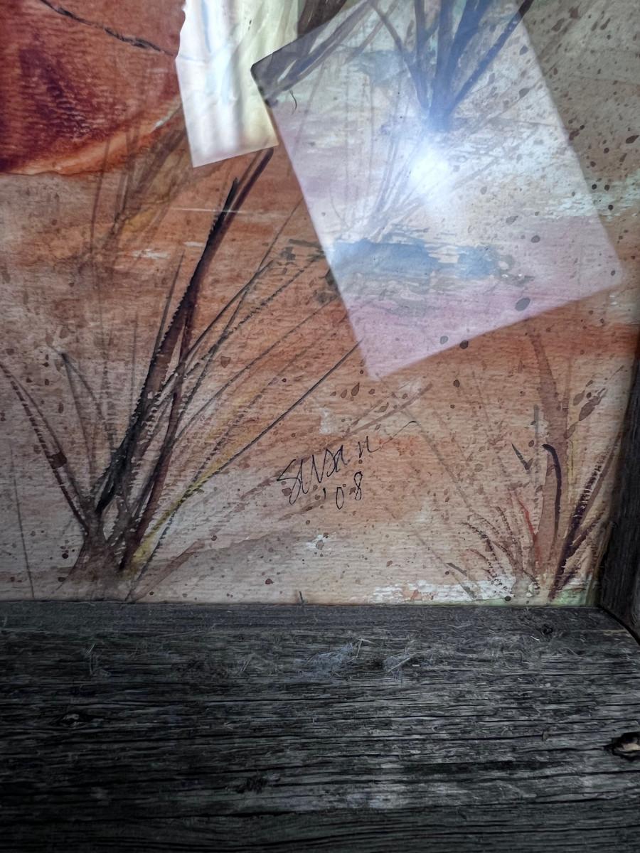 Water Color Under Glass Framed Signed Swan of Pottery