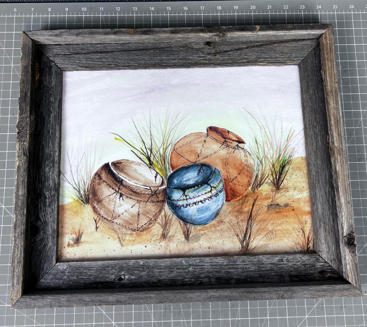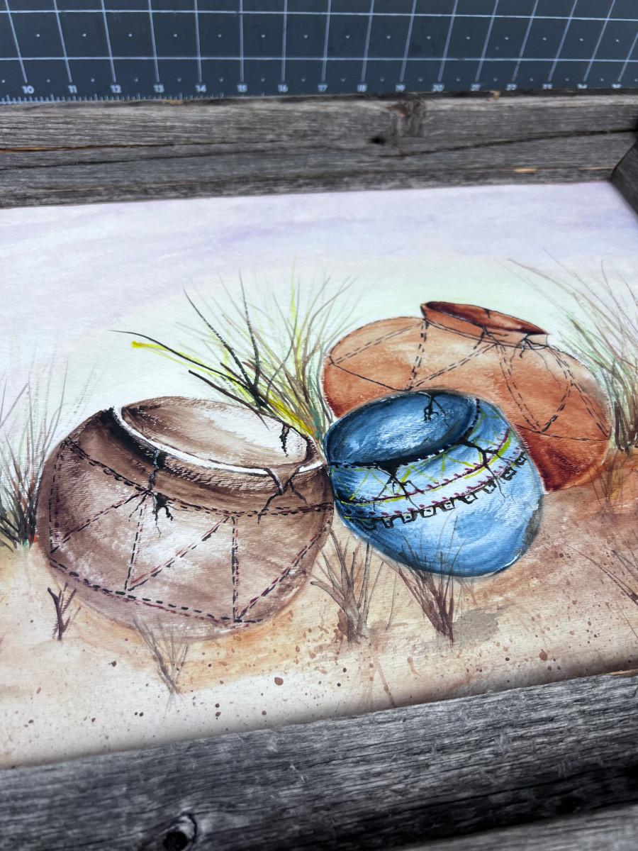 17 x 14" Native American Influence. Painting of Pottery.