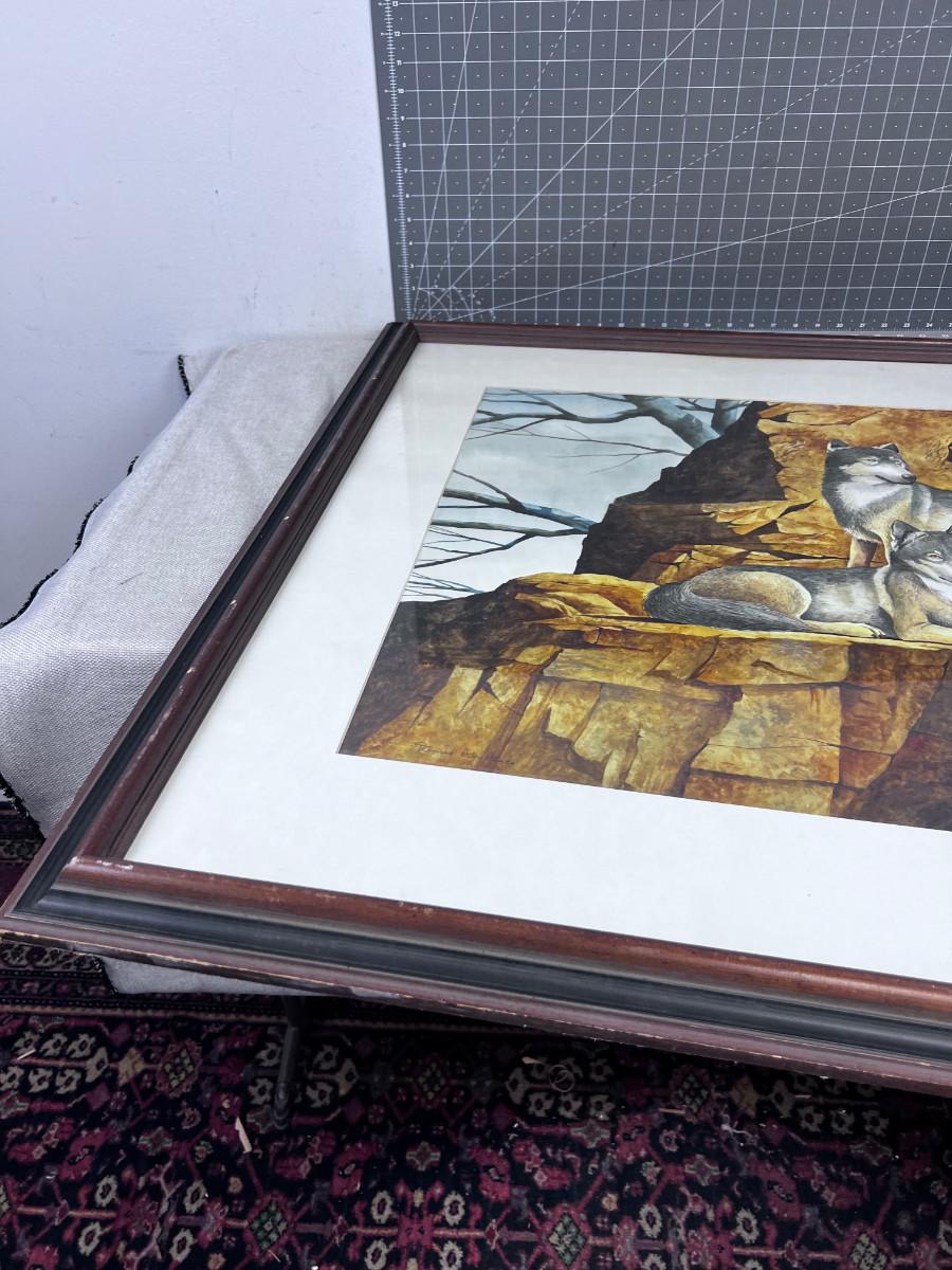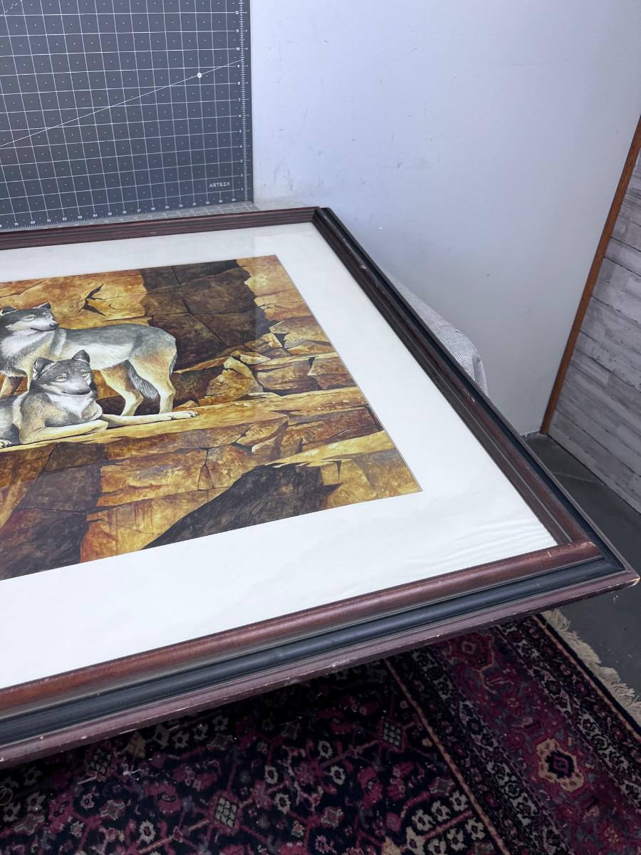 Awesome! Good Usable Condition. Matting needs redone Measures 33 ˛ 41" No Shipping of Frame.
