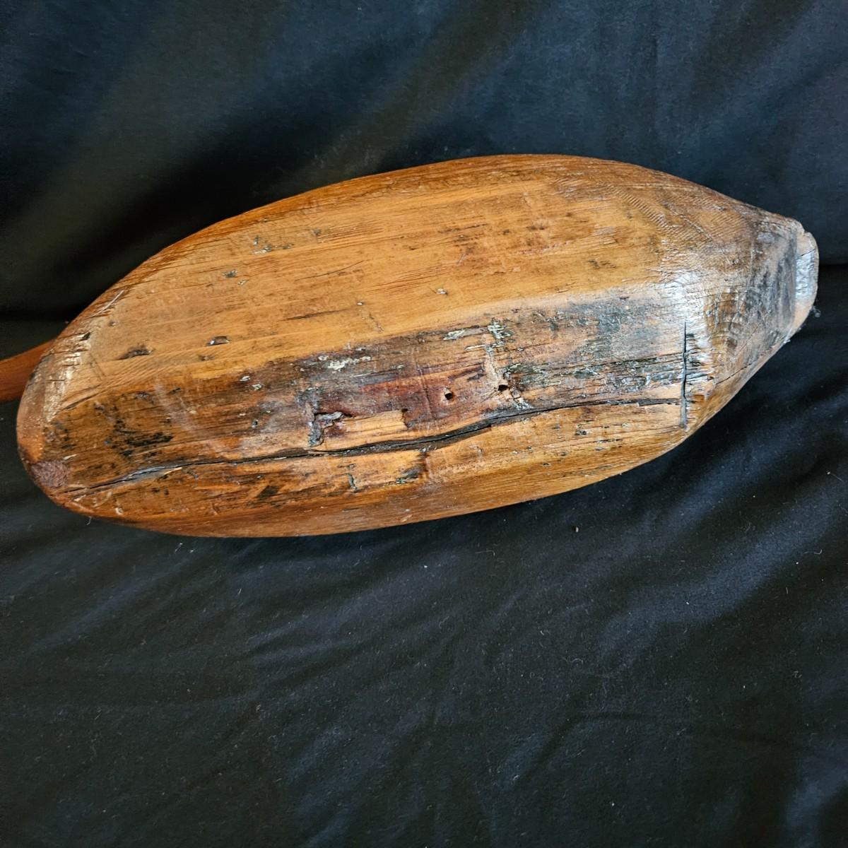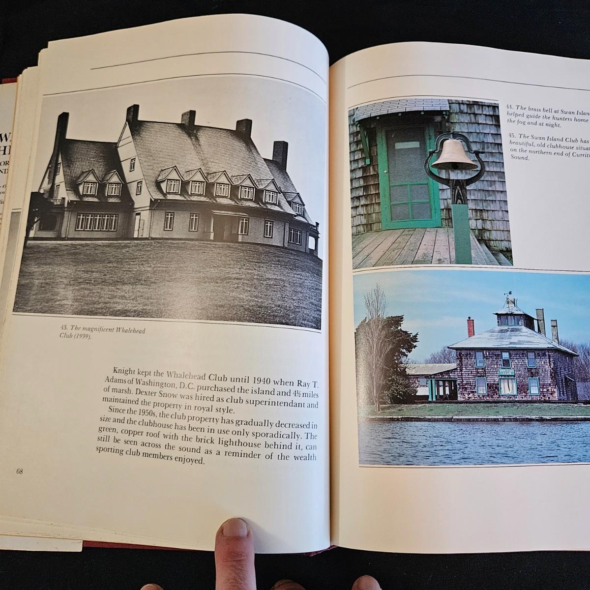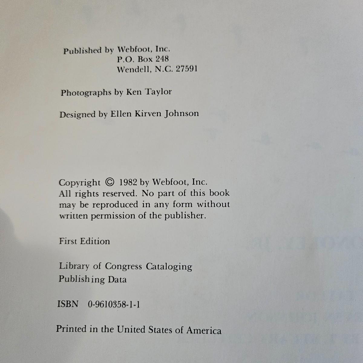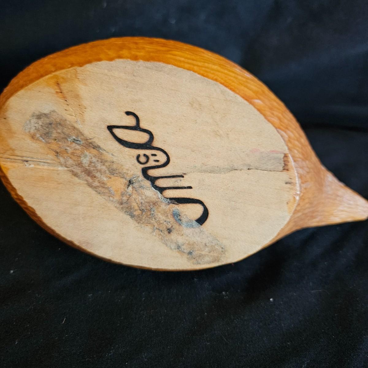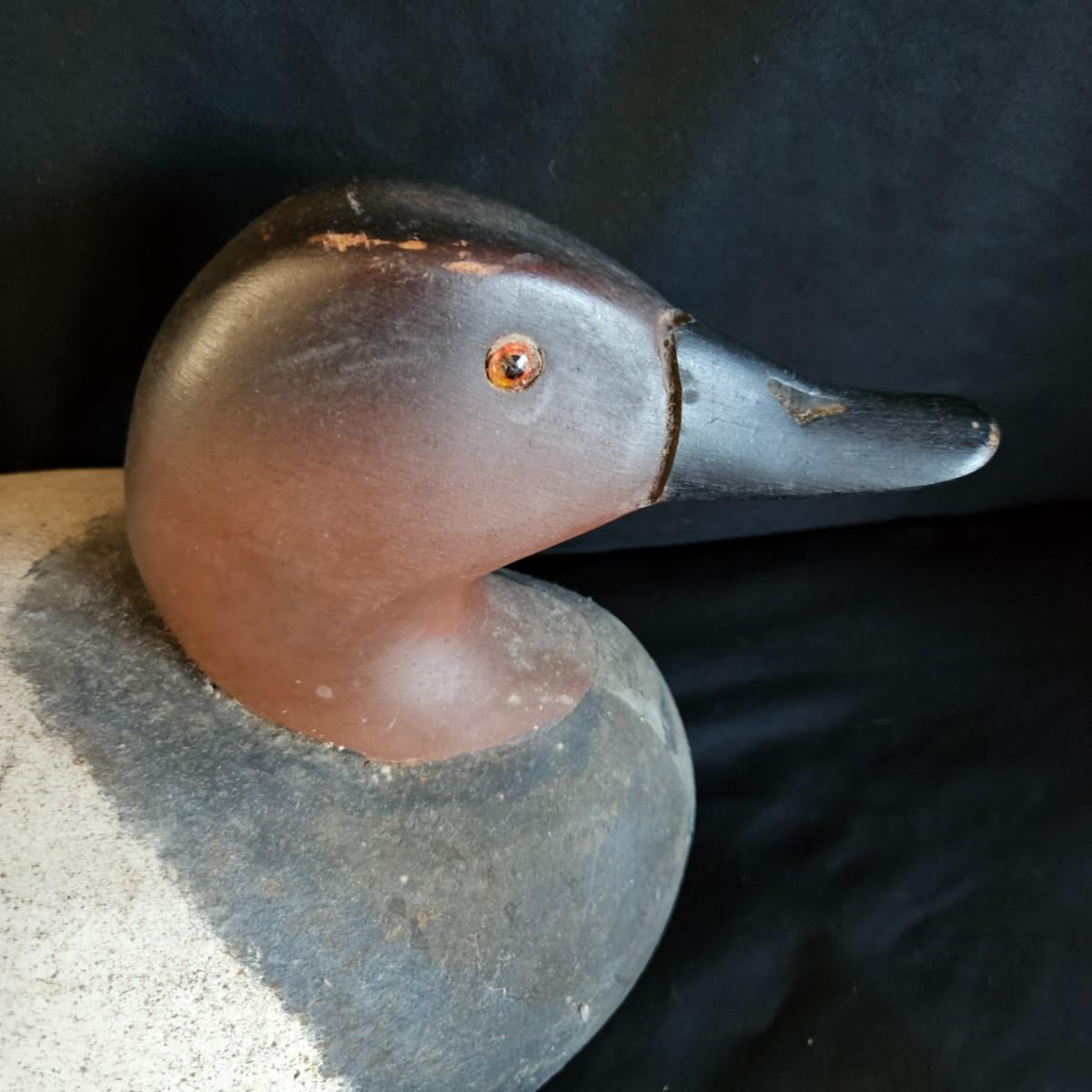 A collection of five water fowl decoys and a book on North Carolina water fowl. Included is two larger wooden decoys, the larger rough carved one measures approximately 17" x 6.5" x 8"H. There are two smaller decoys and the unpainted one appears to have had its head repaired. The smaller piece is made of metal. Shipping available