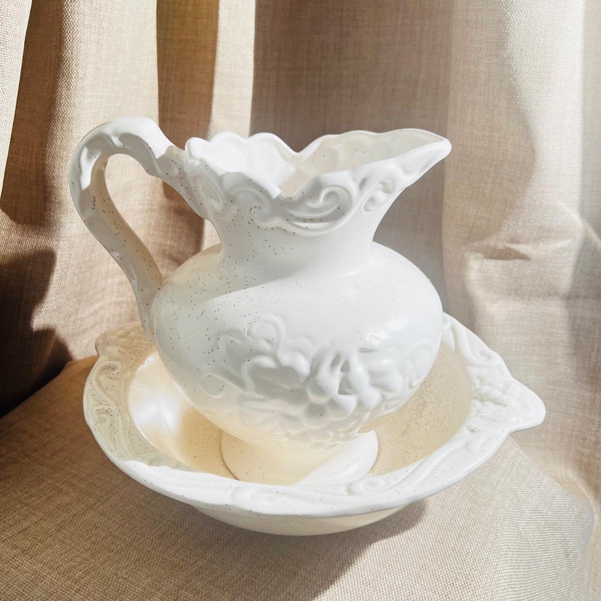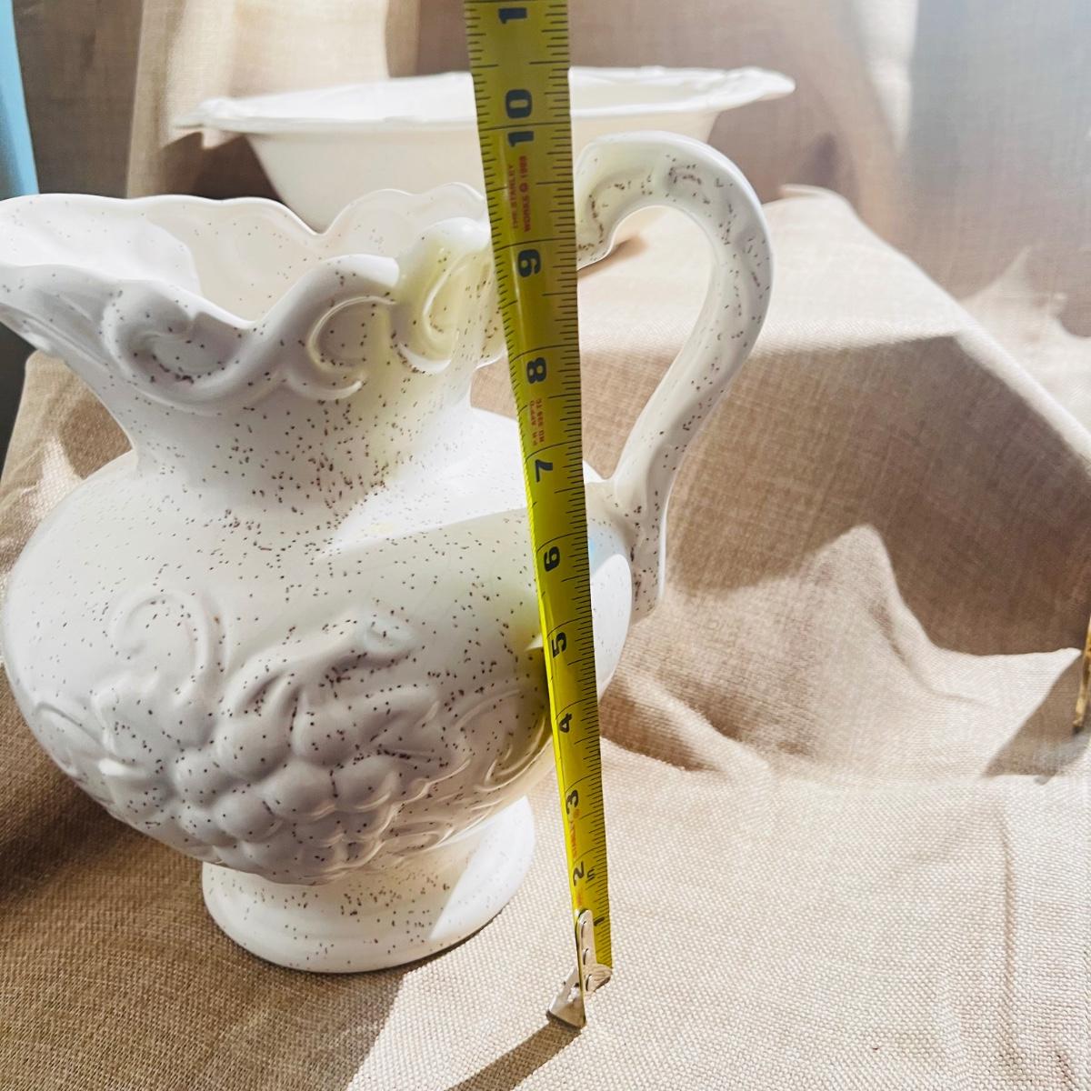 California Calif Pottery USA Grape White Pitcher & Basin Bowl Vintage