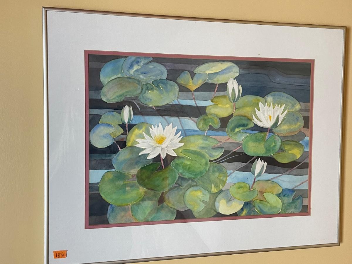 This is a Lovely painting by Karen Morrow. It is a watercolor. It is framed and it is 20” x 25”..