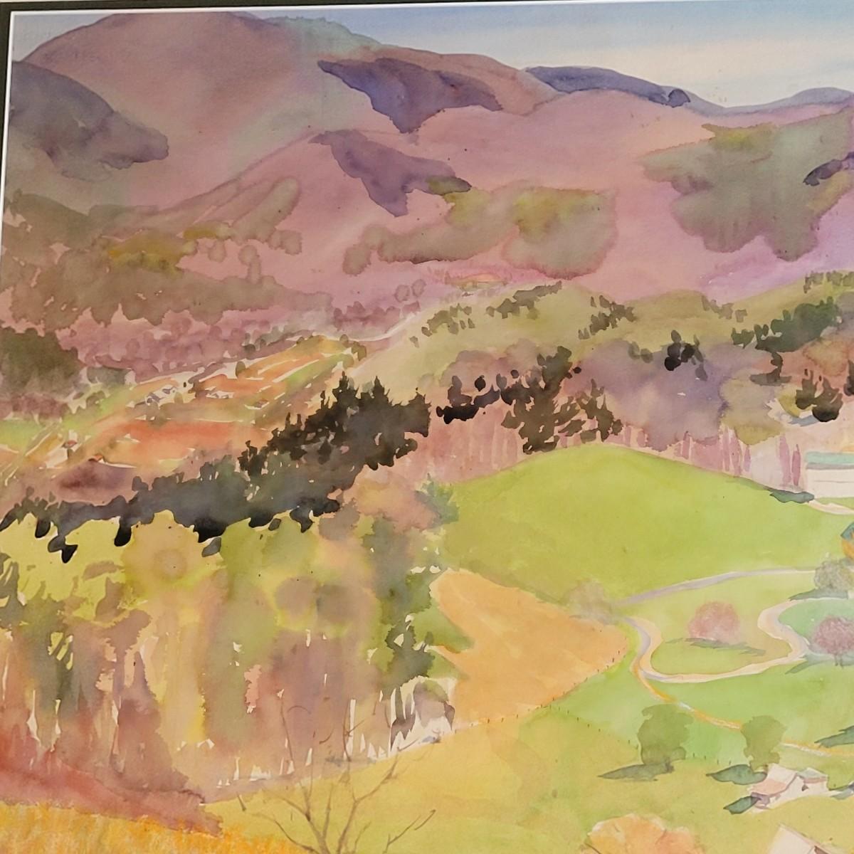 Watercolor and Pastel Mountains and a Valley Painting (GB-EL)