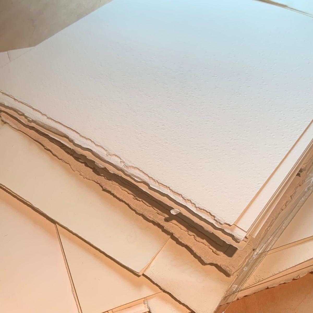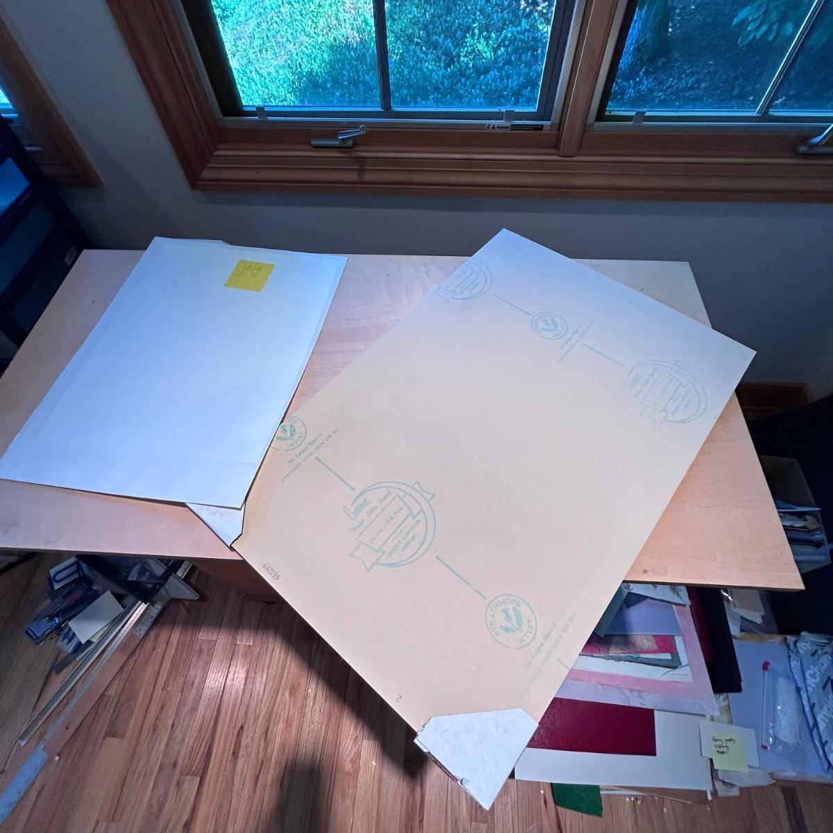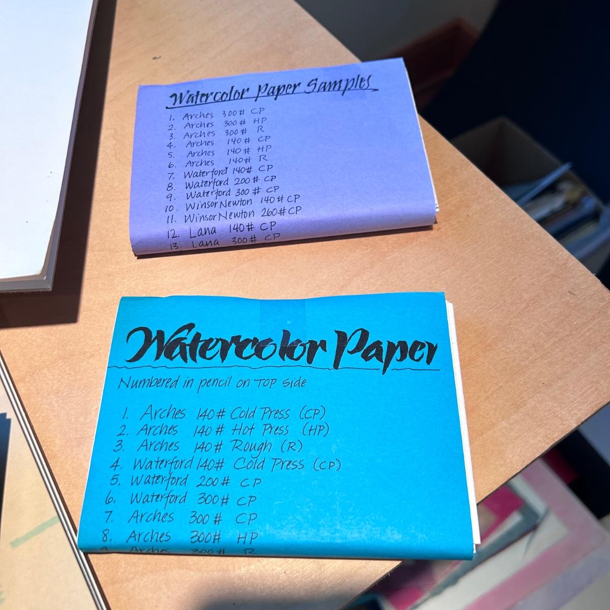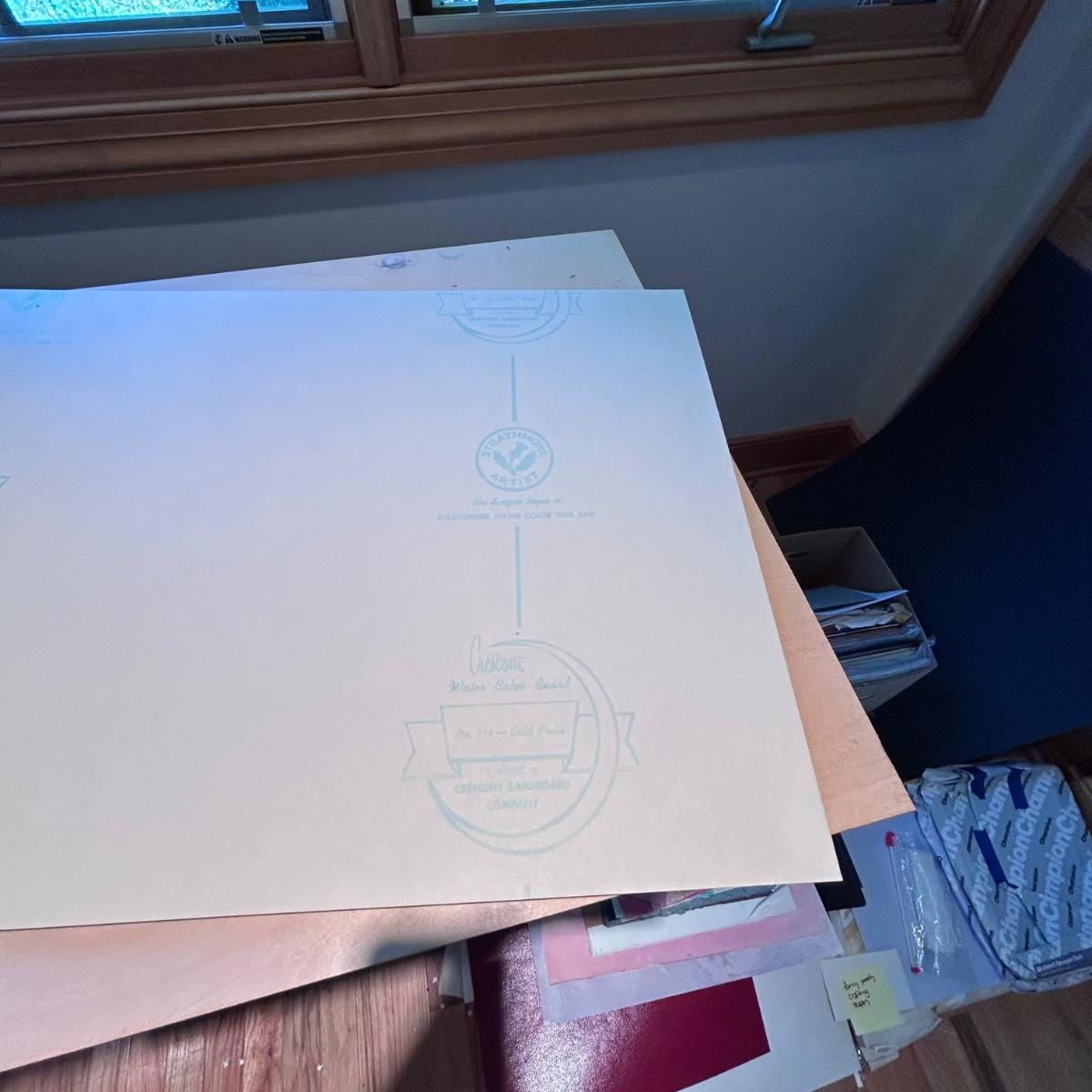 Artist Inkjet paper packs, four 14” x 17” pads, three very small canvases, textured paper, four Aluminum pieces, lots of watercolor samples and folders of textured paper in this artist’s lot. Three watercolor boards that measure 20” x 30”.