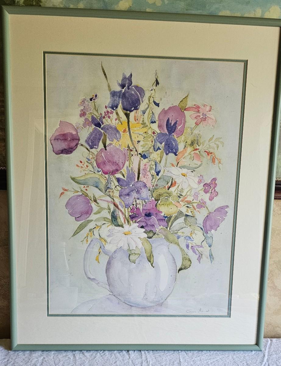 Watercolor Vase of Flowers by Sarah Malin Framed and matted signed