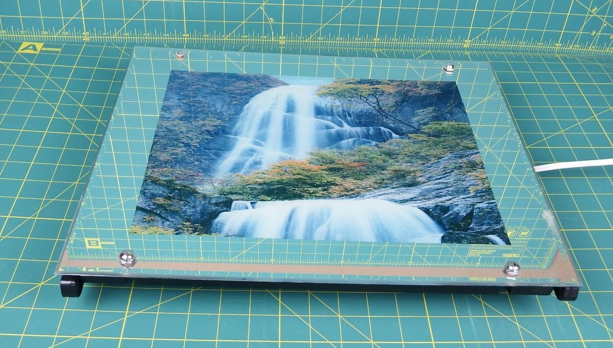 Includes built in stand that folds flat. Sound can be turned on or off separately. Plays nature sounds.
