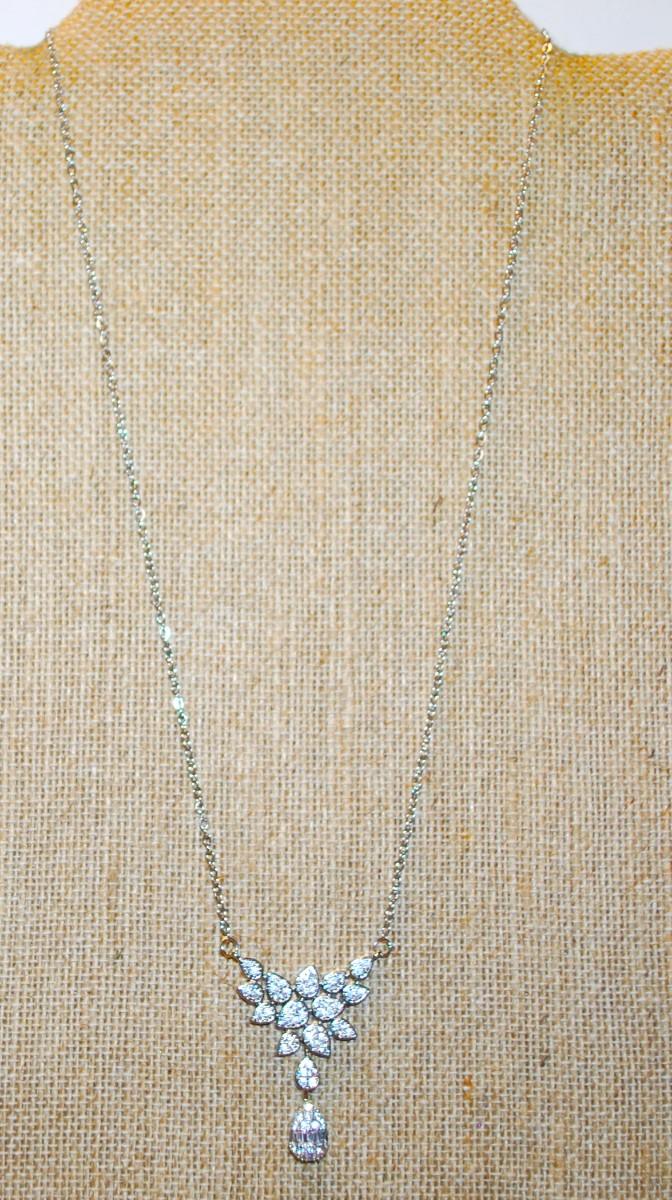 "Waterfalls" Style Setting PENDANT (1½" x 1¼") with Lots of Tiny Stones on a Silver Tone Necklace Chain 17" L