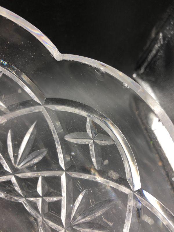 Waterford fruit bowl That has seen better days. There are chips on many of the edges. Stamped Waterford on the bottom.