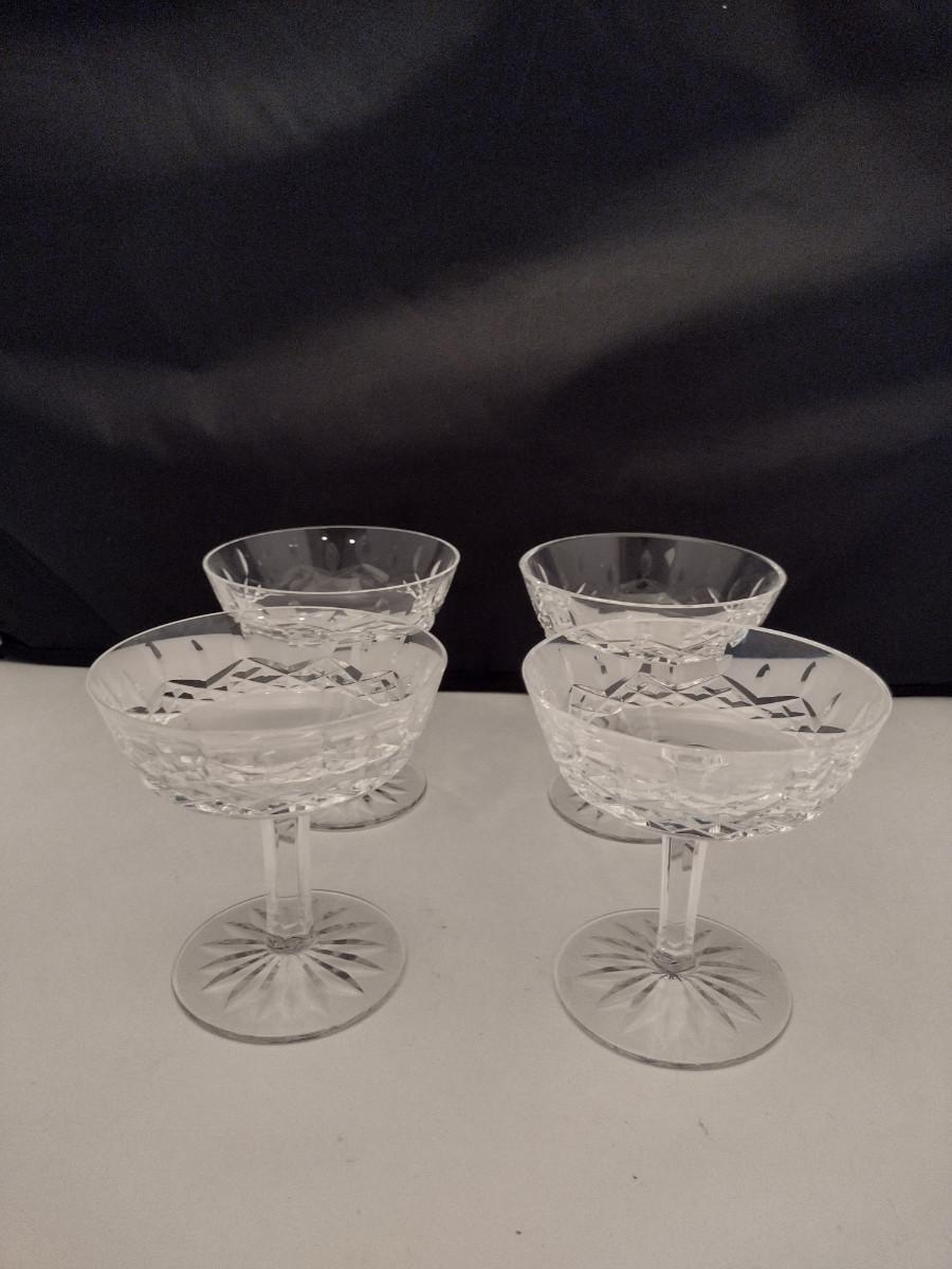 Waterford Crystal Champagne/Tall Sherbet Glasses- Possible Lismore Pattern- 4 Pieces. Items appear to be in good, but used condition.