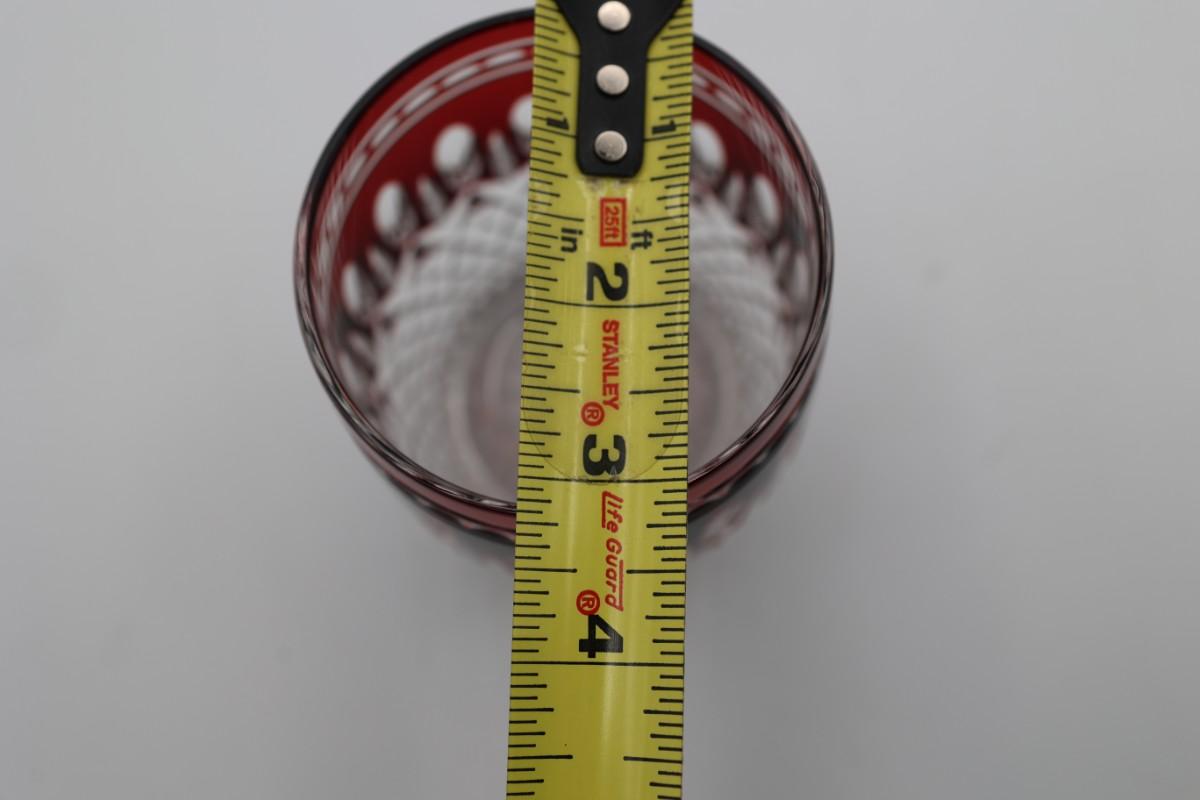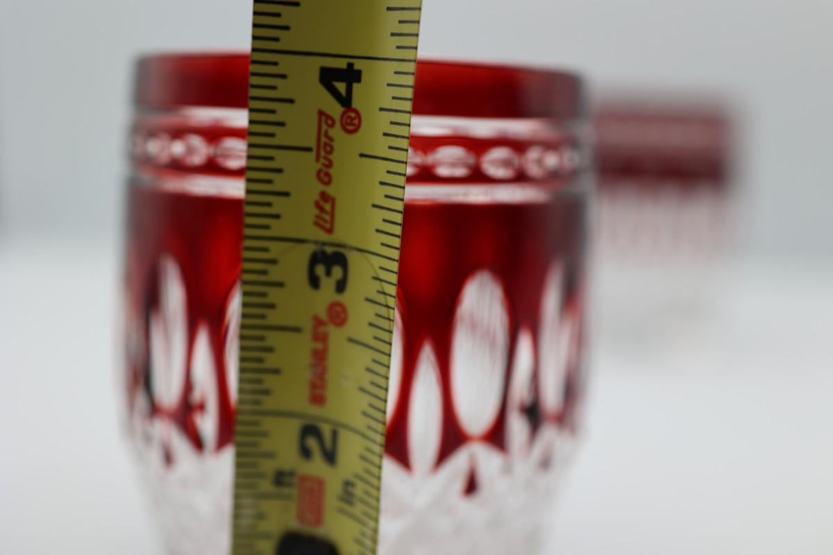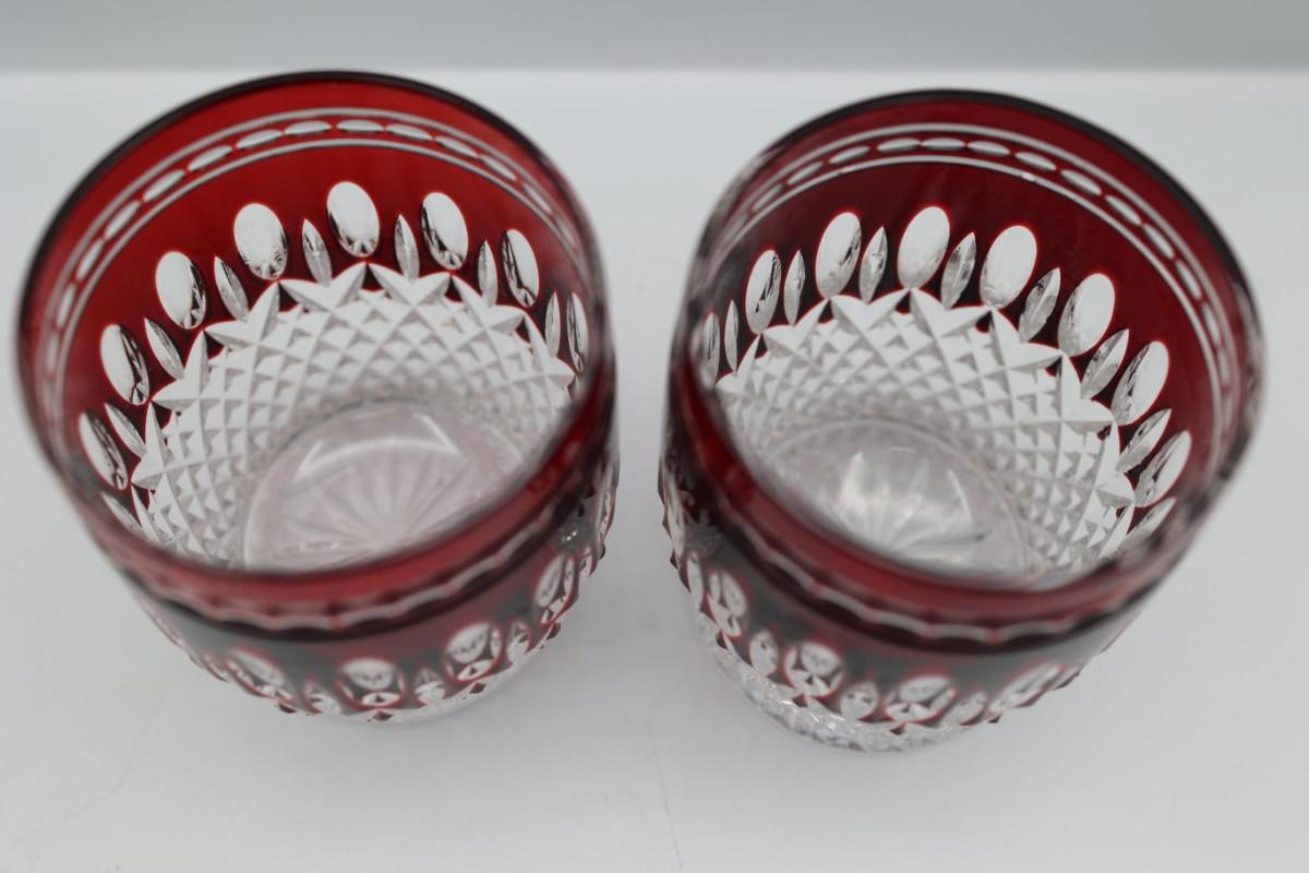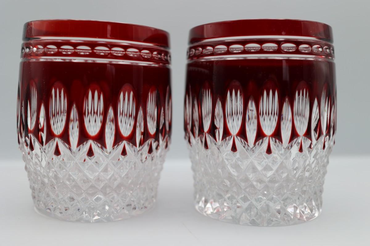 Two 4" tall Waterford crystal clarendon ruby red glasses.