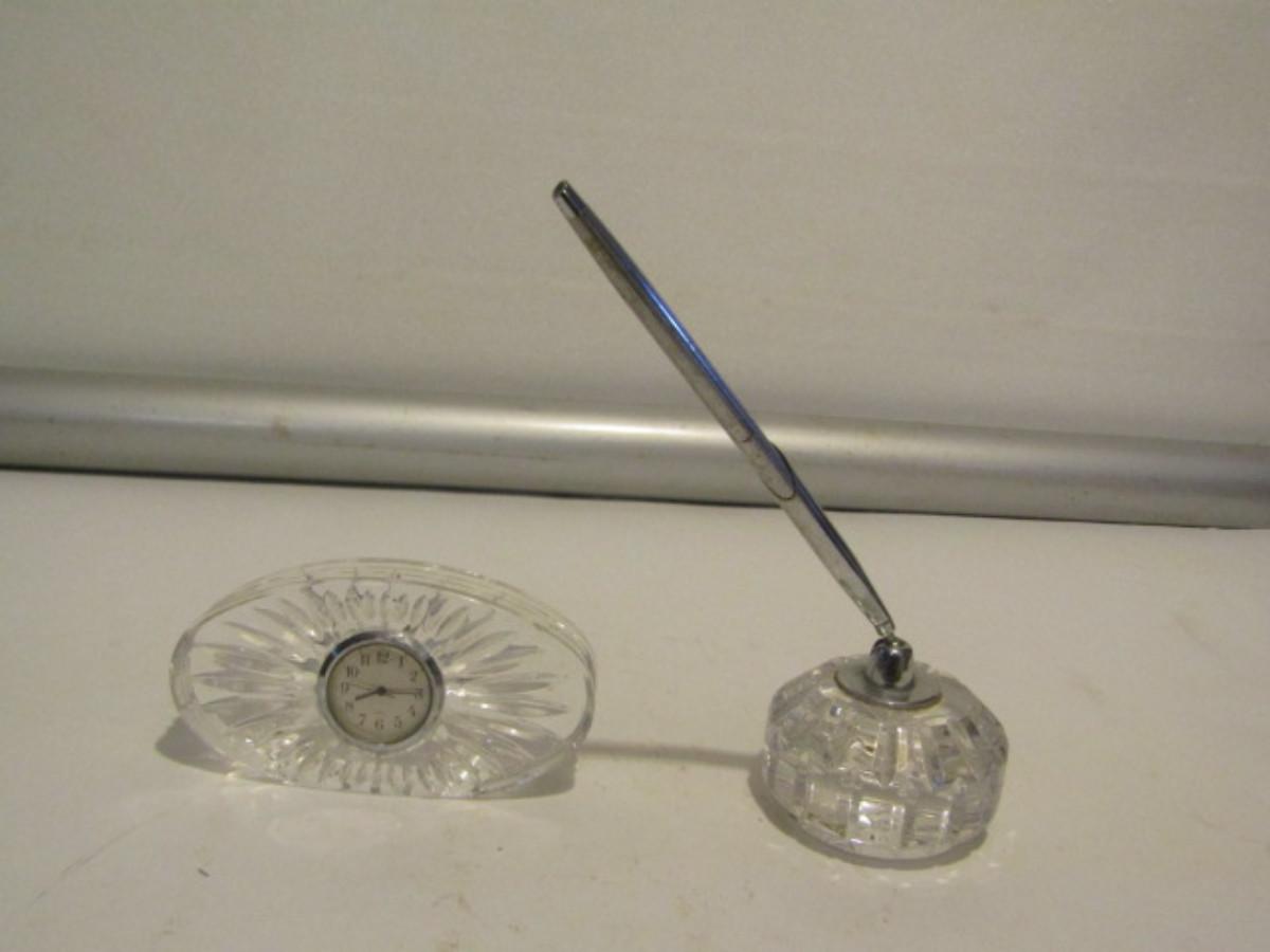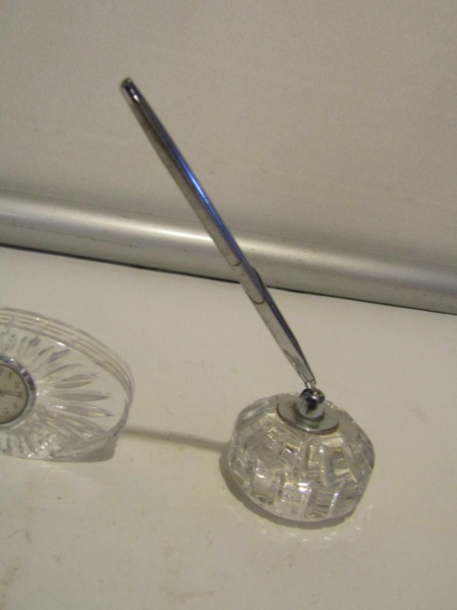 Waterford Crystal Desk Set- Clock and Pen with Holder. Pen needs new ink insert. Clock is not currently running- needs battery.