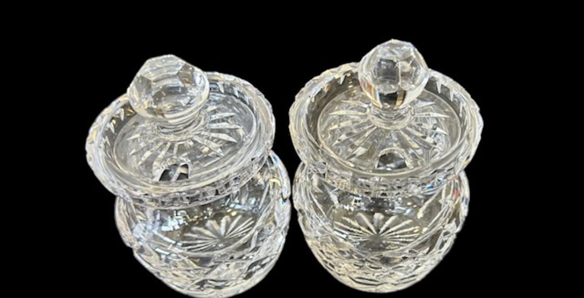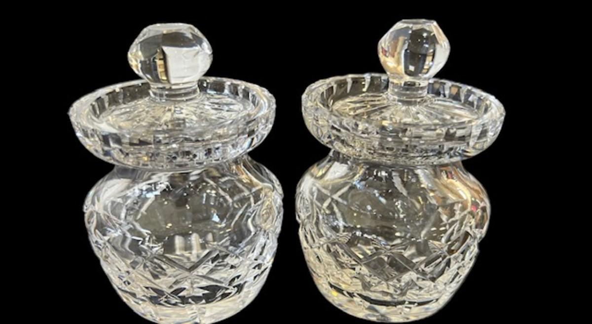 Pair Waterford Crystal Jam Jar/Mustard Pot with Lid. Excellent Condition, No Chips, flaws.