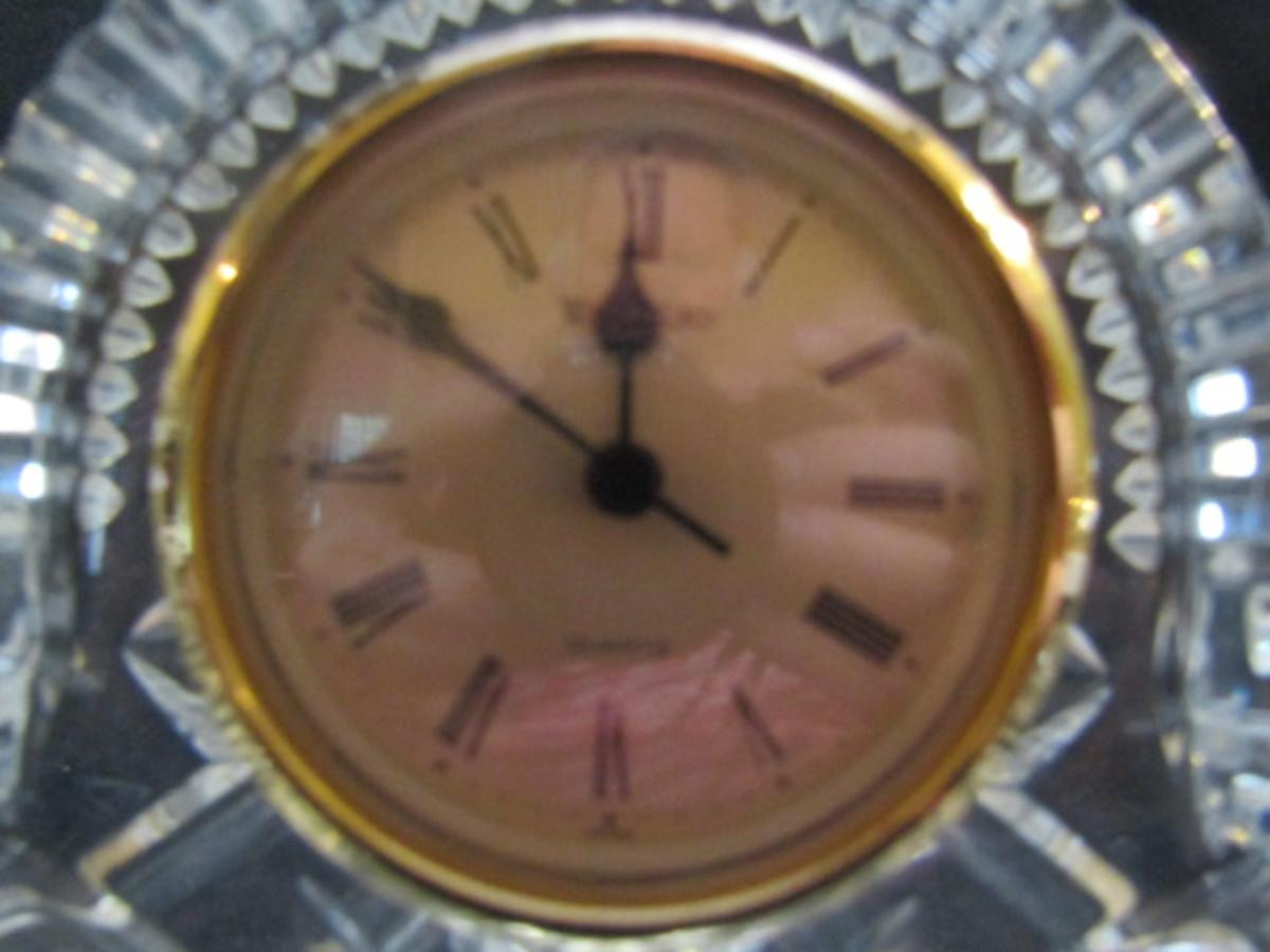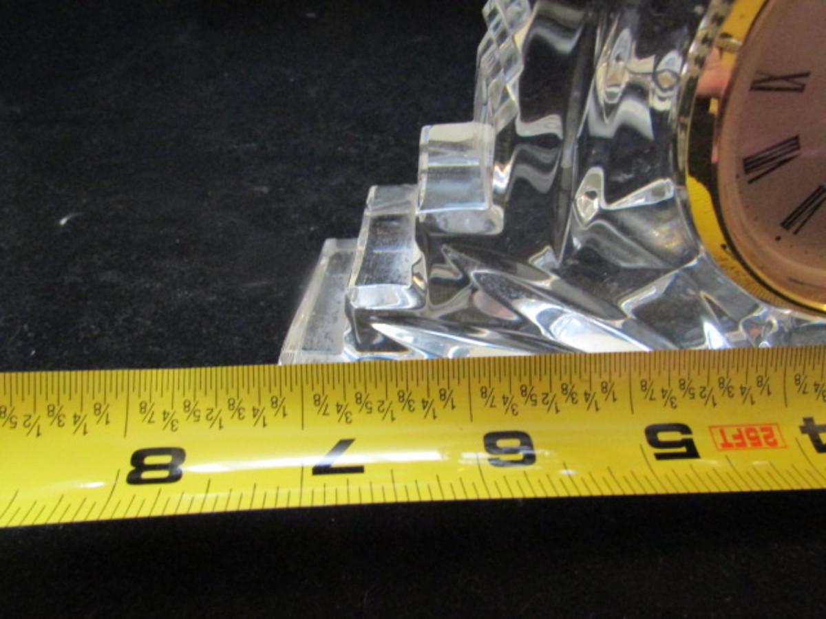 Waterford Crystal Mantle-Style Clock with Cut Sunburst Accent (#27). Battery operated. In good condition, but is not currently running.
