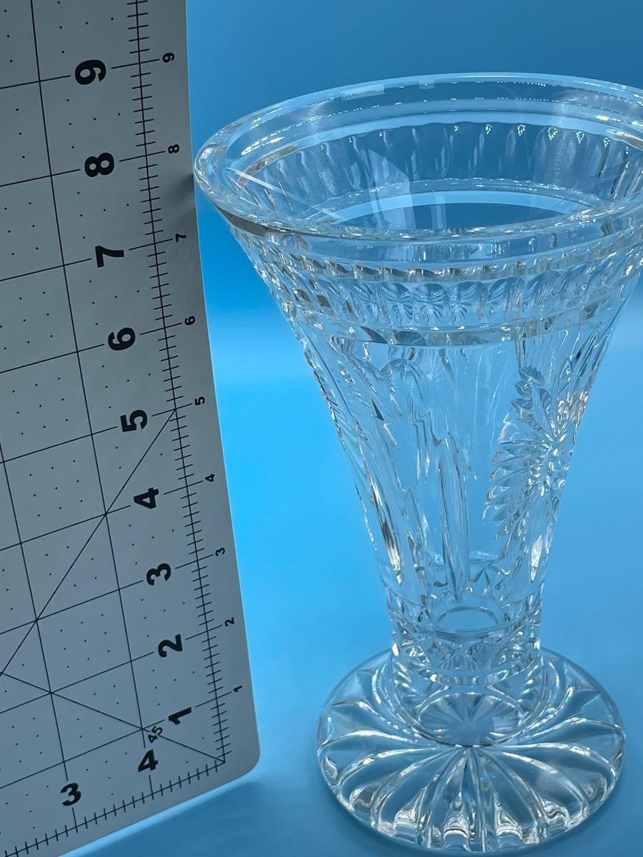 Heavy lead crystal, 8 inches tall in excellent condition. Would be beautiful on the Bride’s table or at a reception party.