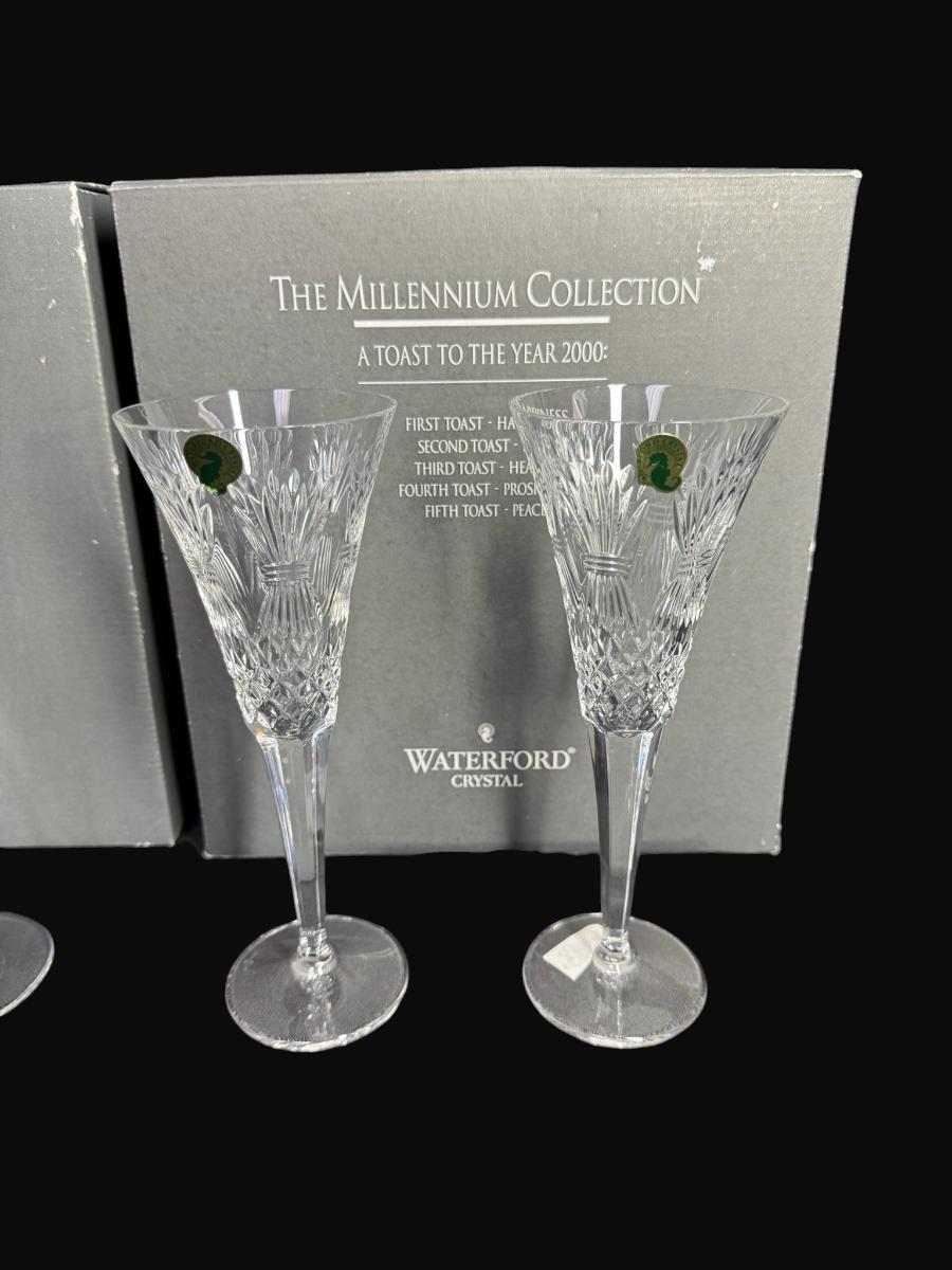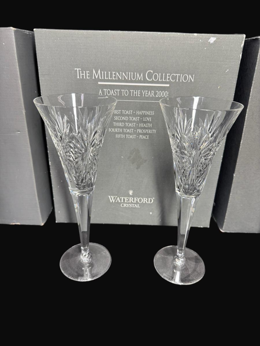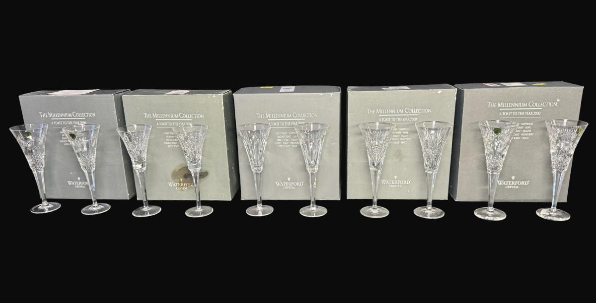 This assortment includes Peace, Happiness, Love, Health & Prosperity. Original boxes may have age related wear. Flutes are all intact without chips. [CS]