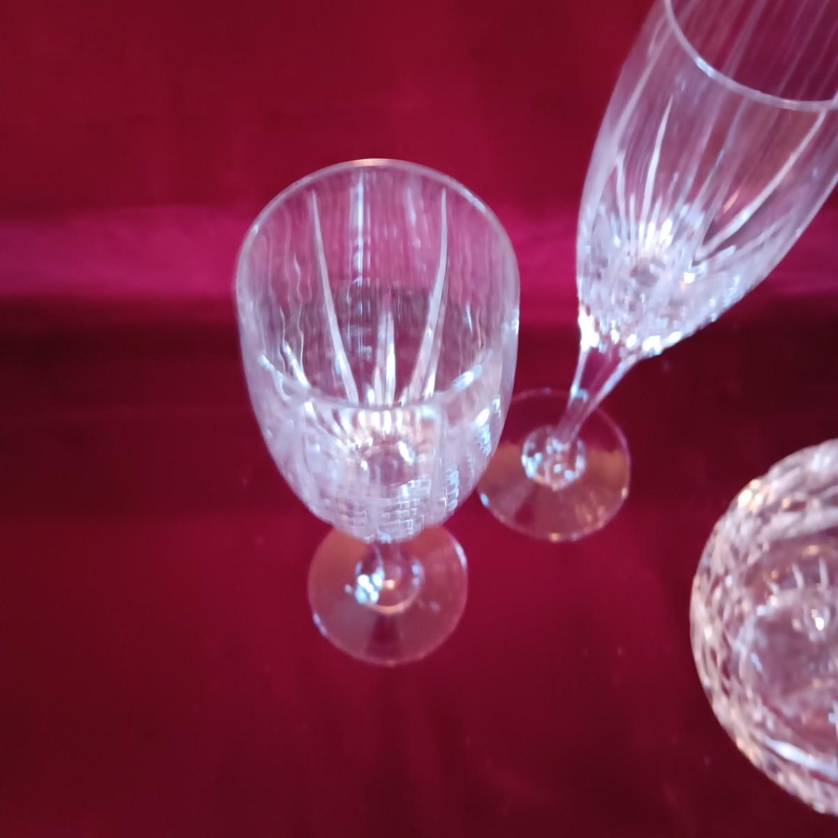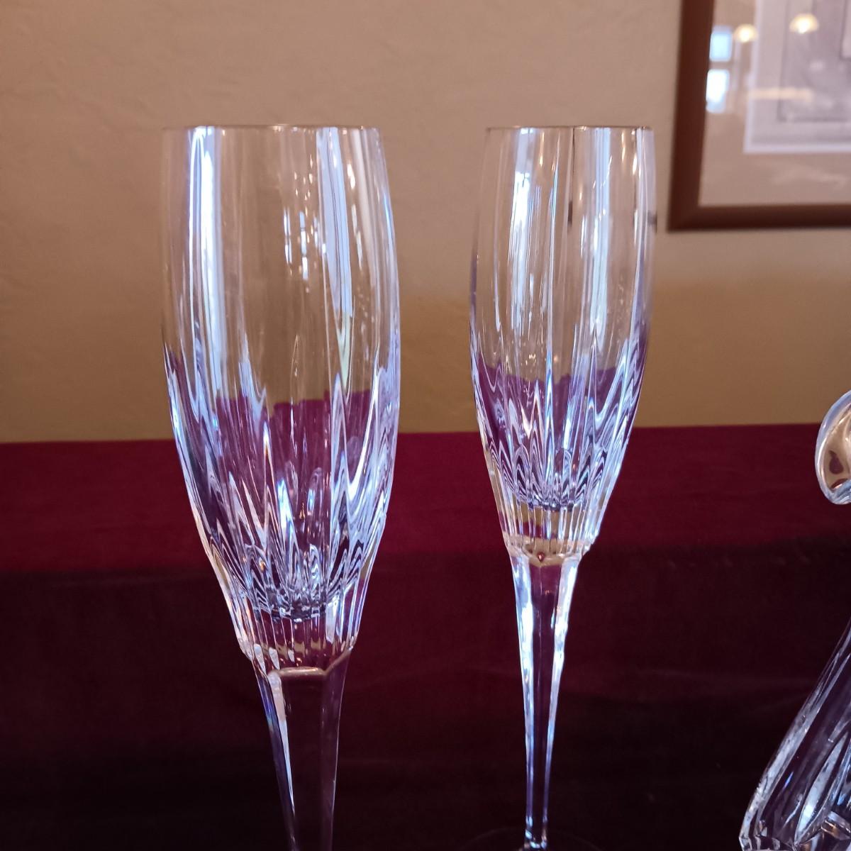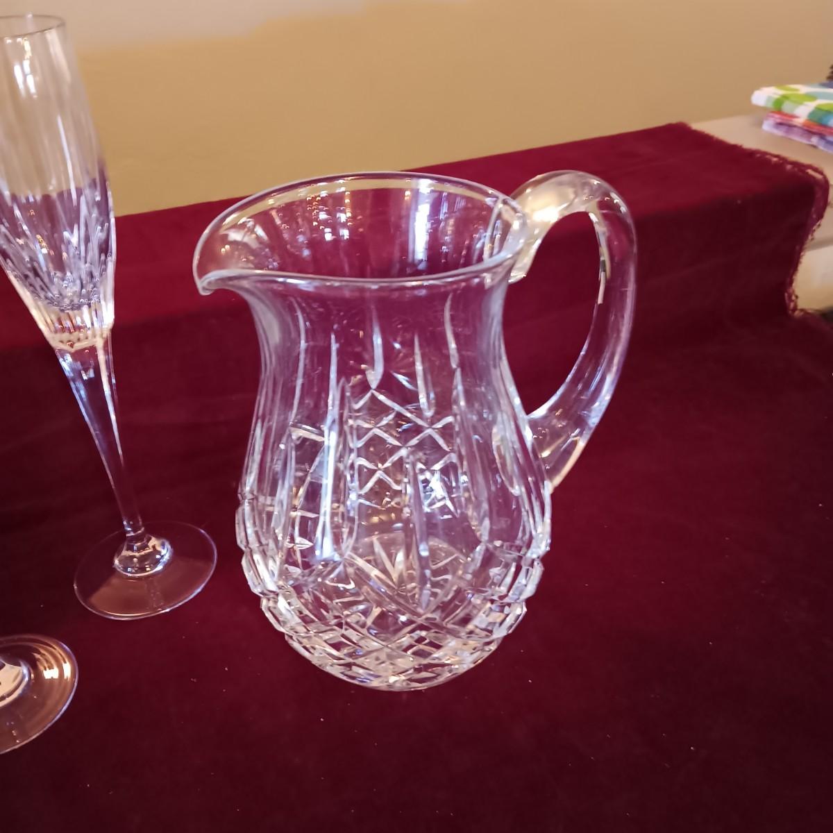 WATERFORD CRYSTAL PITCHER AND 2 CRYSTAL STEMMED GLASSES