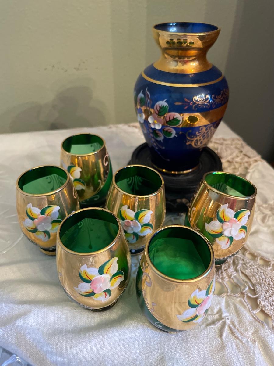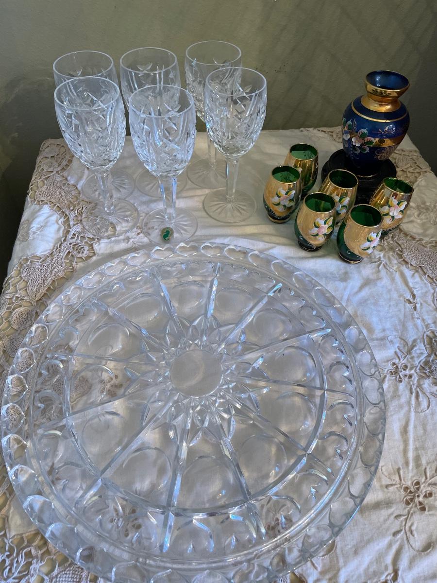 Waterford crystal set & green glasses