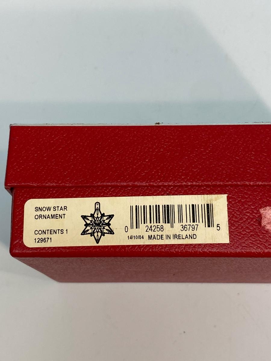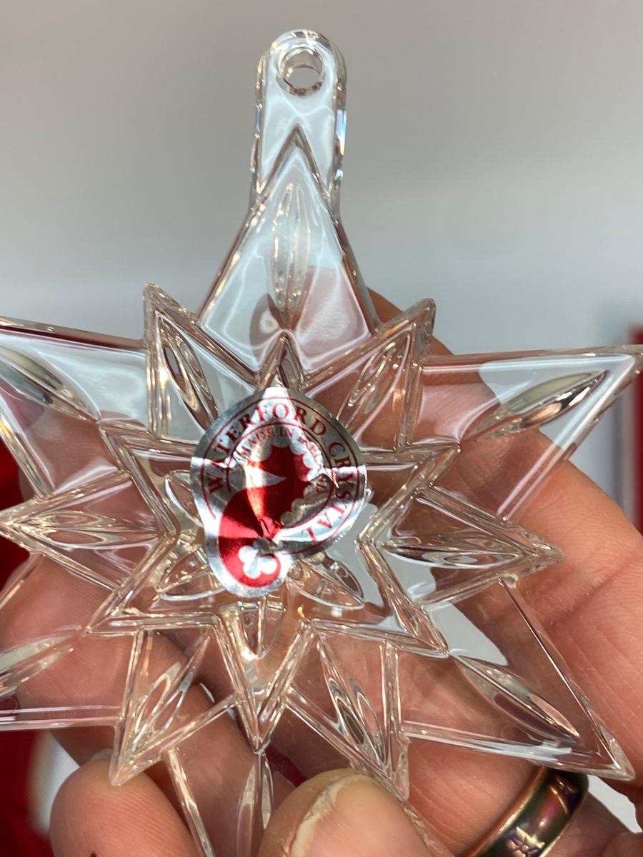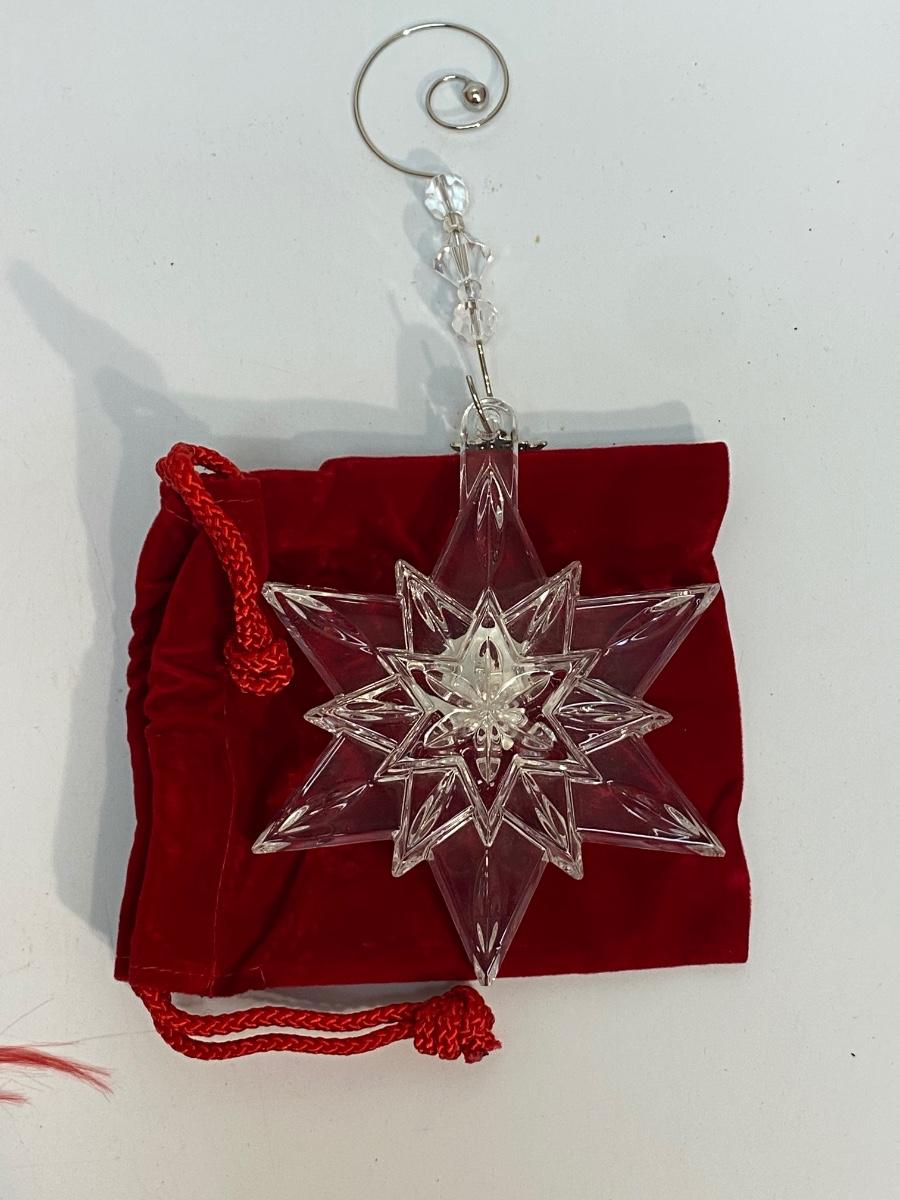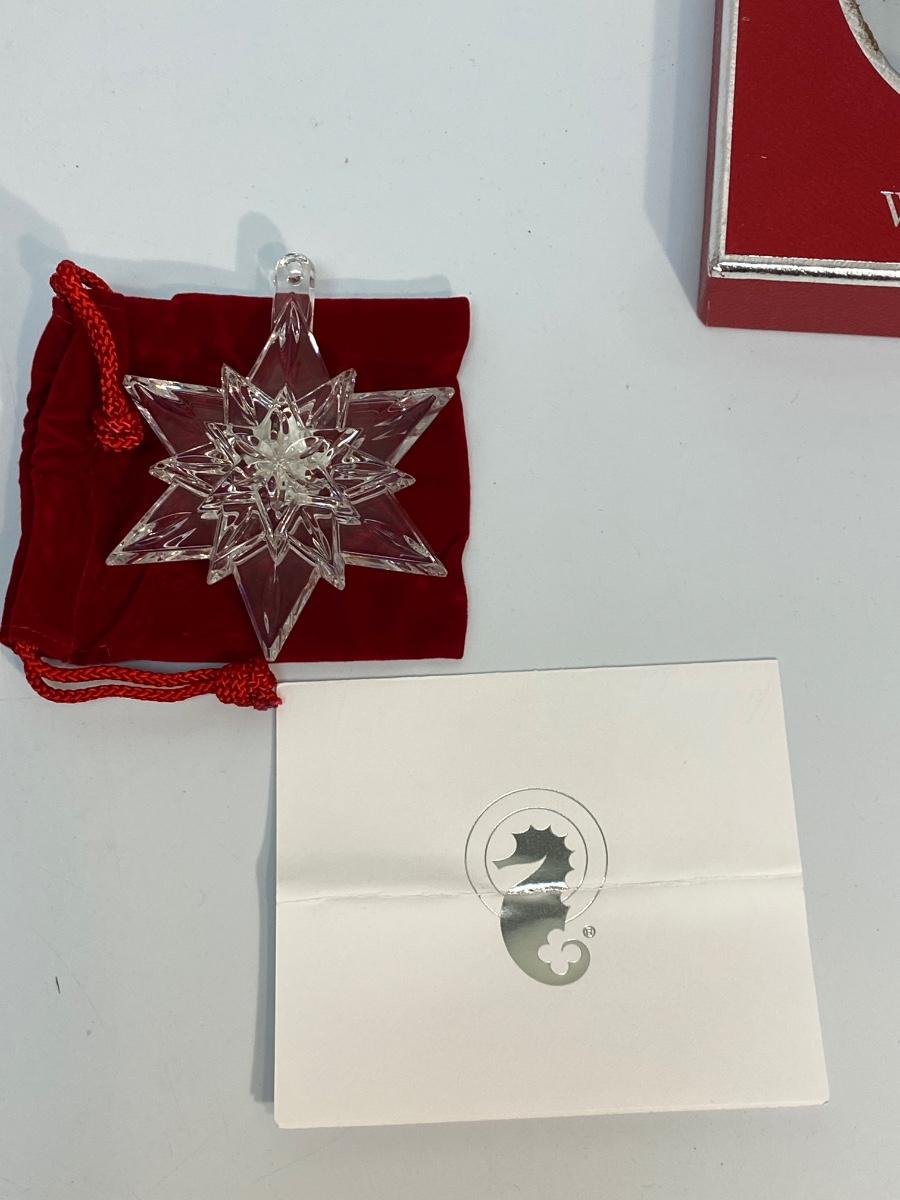 Waterford Crystal Snow Star Holiday Tree Ornament Boxed. In excellent condition. Has hanger hook, velvet storage bag and COA. Waterford sticker and mark on ornament.