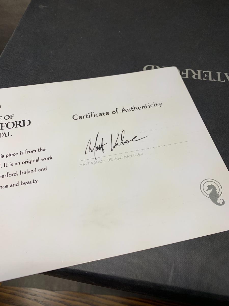 Very heavy Tripod Waterford Crystal bowl with original box, certificates and packing paper