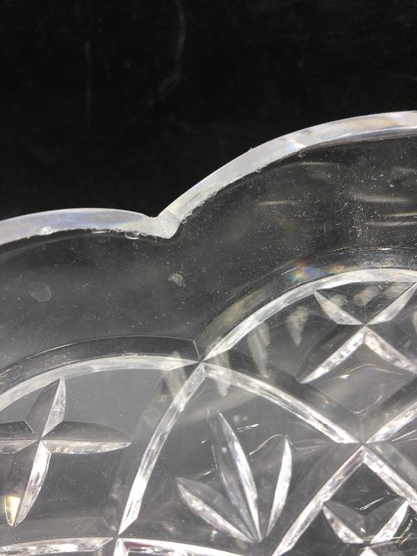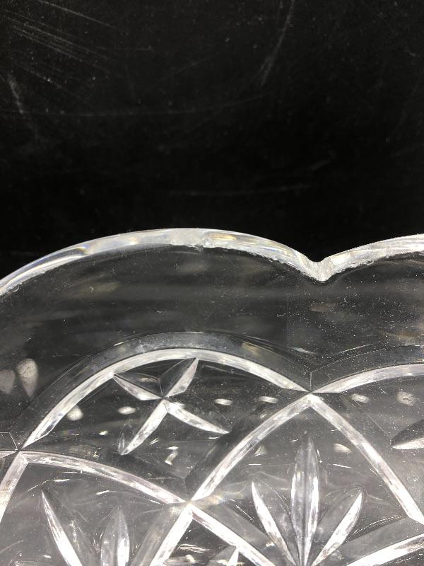 Waterford fruit bowl That has seen better days. There are chips on many of the edges. Stamped Waterford on the bottom.