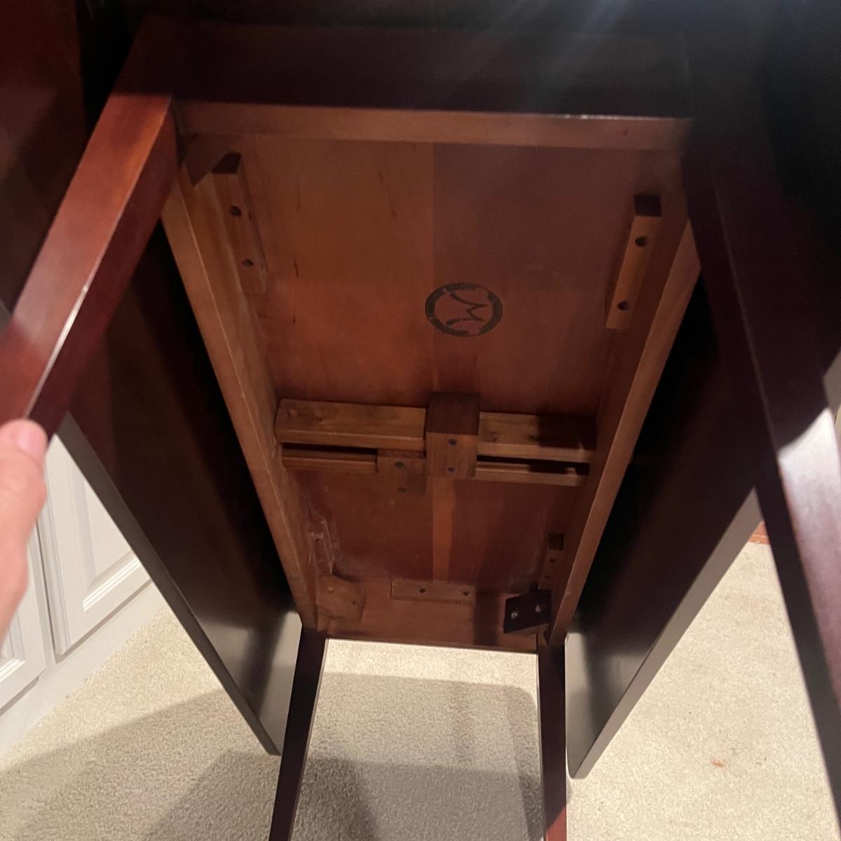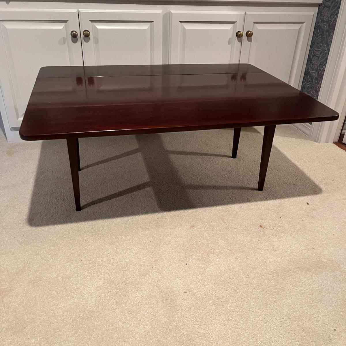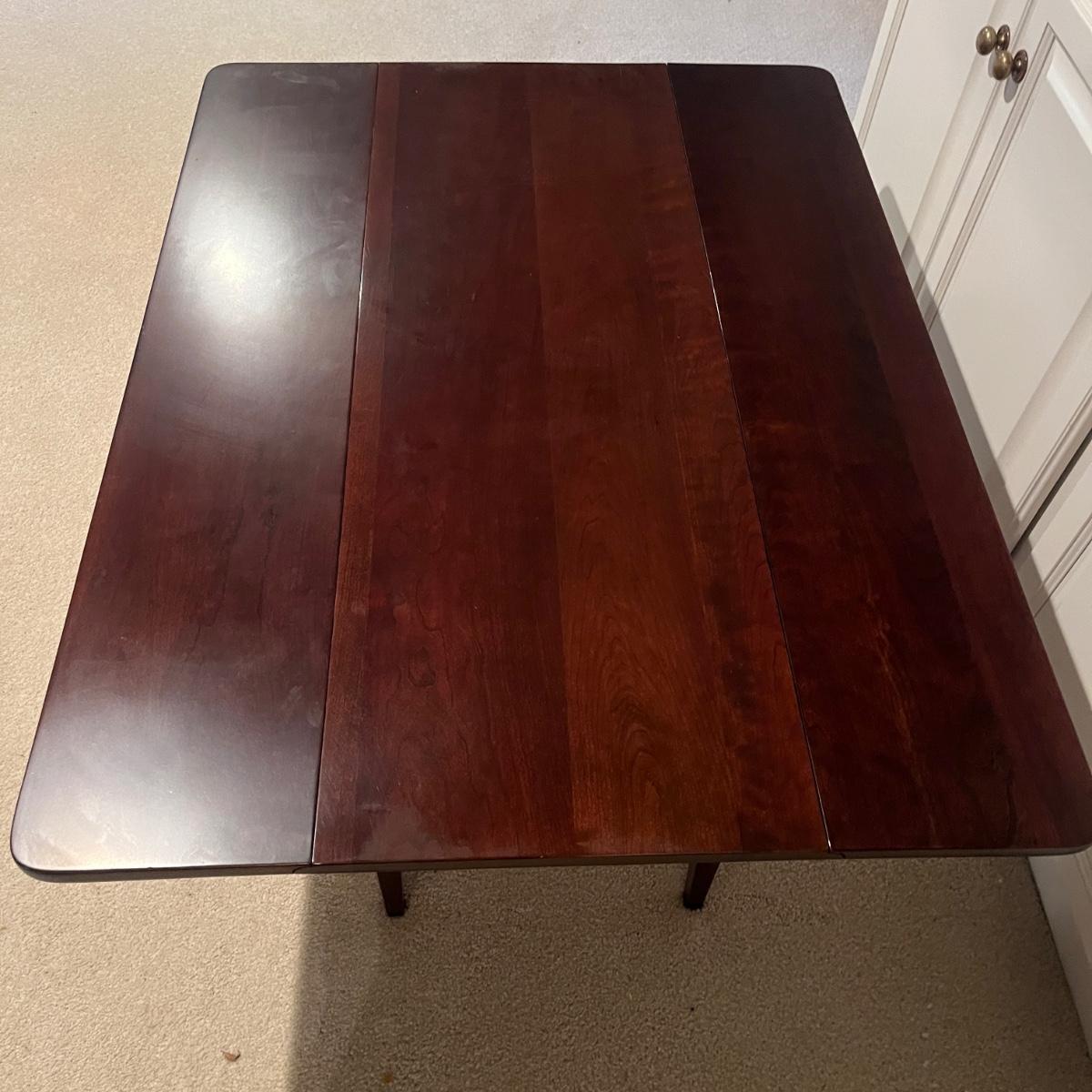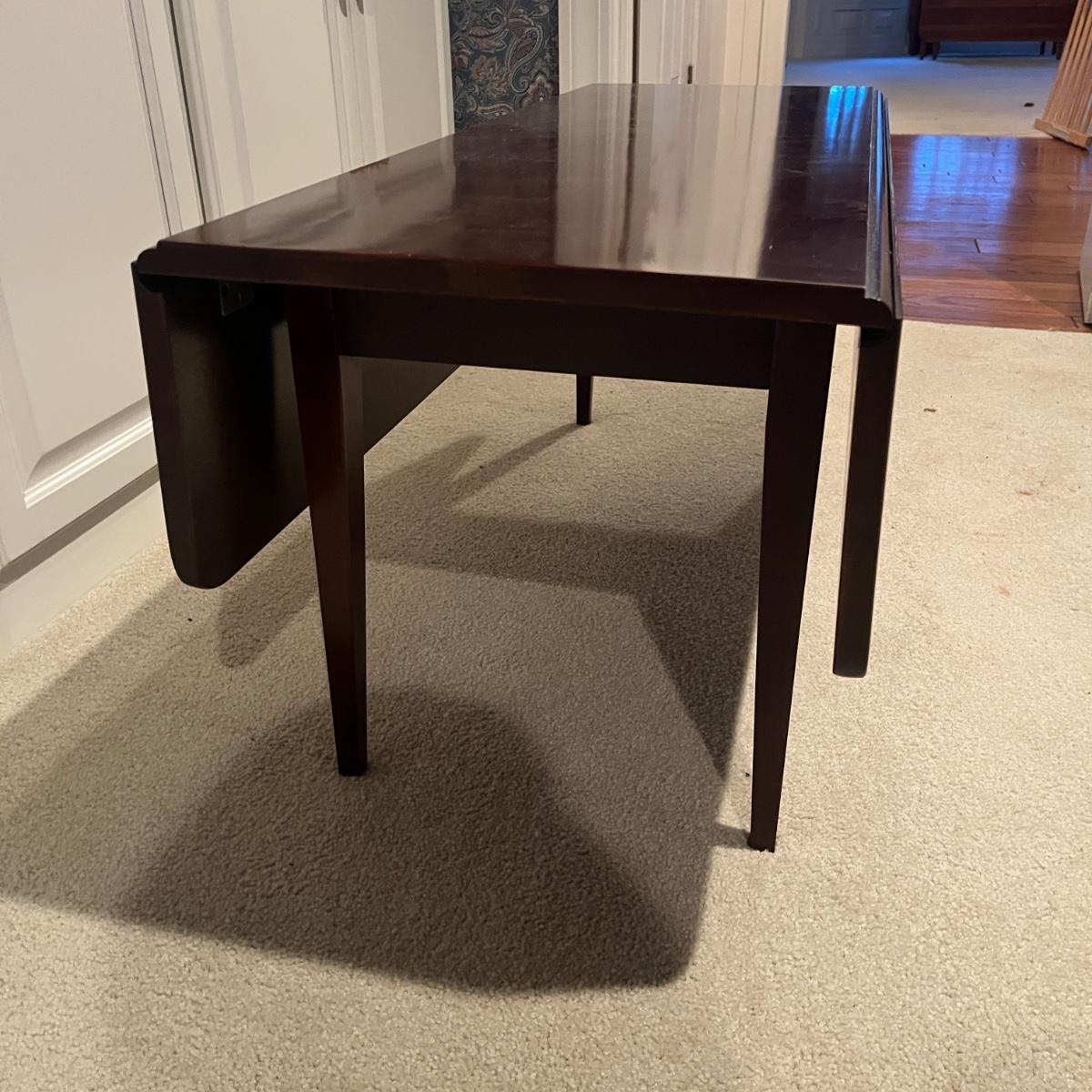 Lot includes a Waterford Furniture Maker wooden drop leaf coffee table. Table measures 32” x 42” x 17.5”H when open and 16” x 42” x 17.5”H with leaves dropped.