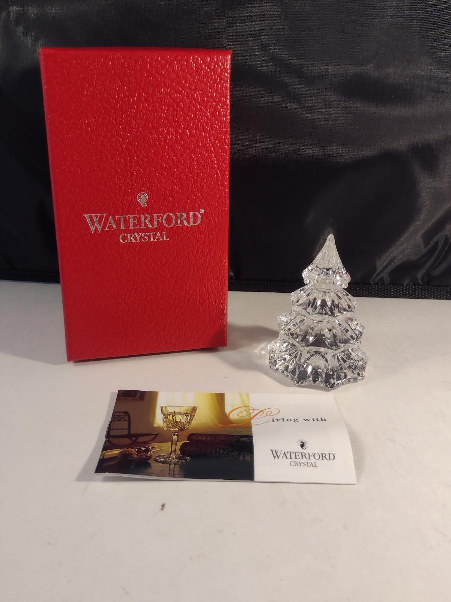Waterford German Crystal Small Christmas Tree Figurine- Approx 3" Tall. Original box included.