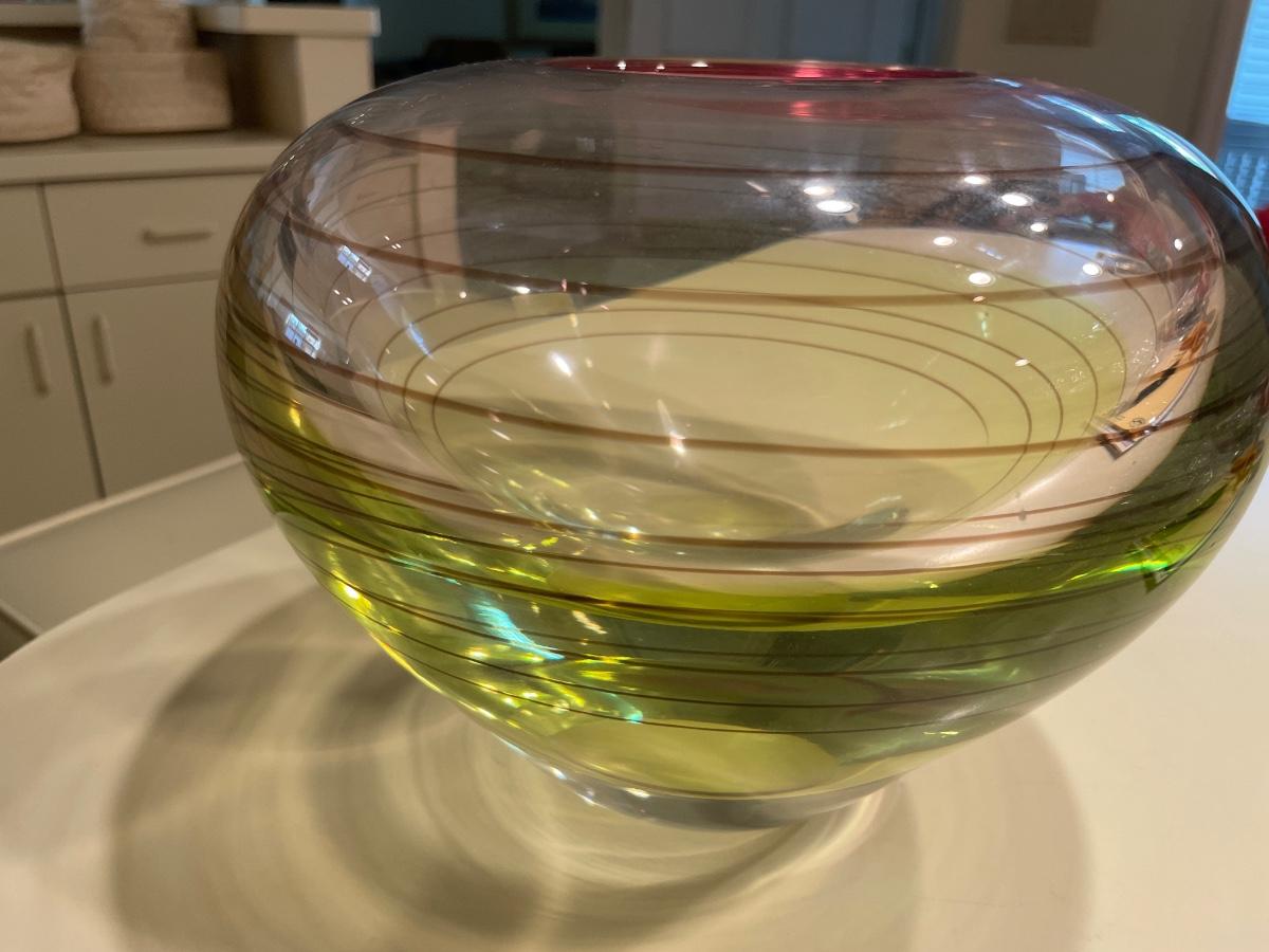 Waterford green and cranberry vase