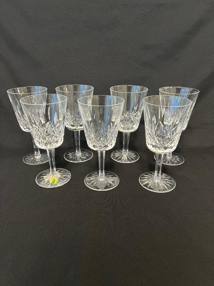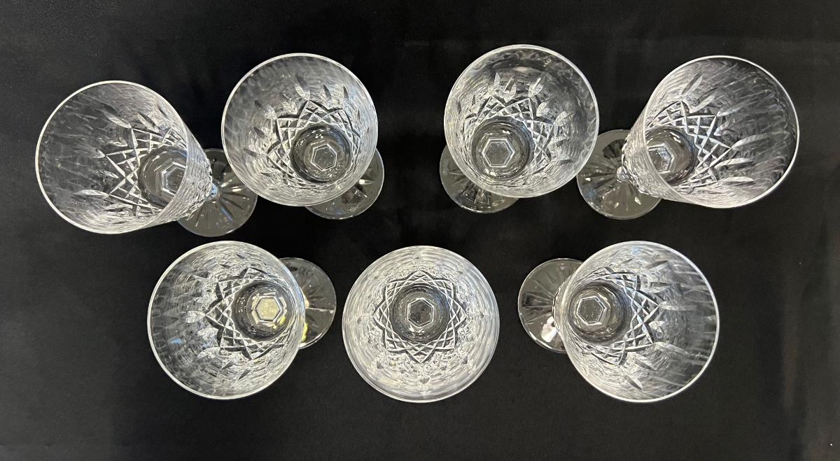 Total of 7 pieces. Five have no chips or cracks. Two have small chips, one on the base and one on the rim. Measurement: 7"H (each). [SG]
