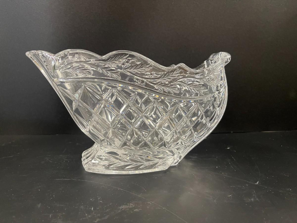 <p>Waterford Marquis lead crystal Holiday Sleigh. Approximately 10" long x 5 1/2" high x 5 3/4" wide. Excellent, unused condition. Comes with original box, but box shows a lot of wear. </p> # 1172