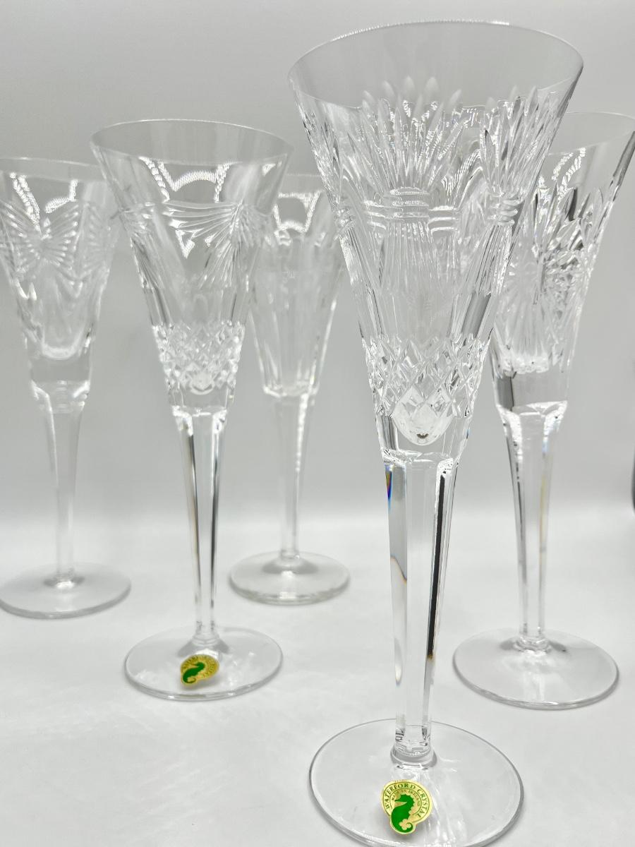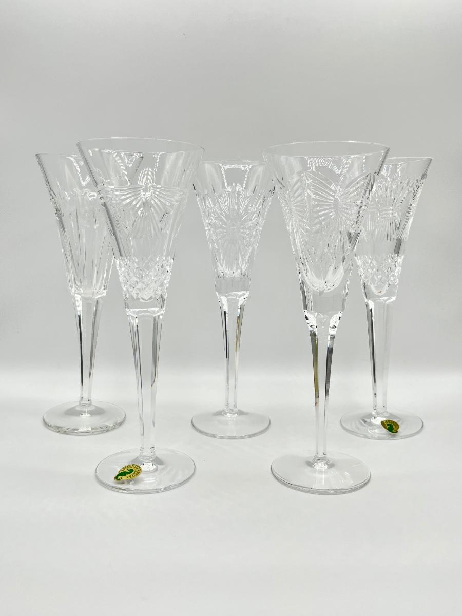 WATERFORD ~ Millennium Series ~ Five (5) Toast Cut Base Continental Champagne Flutes