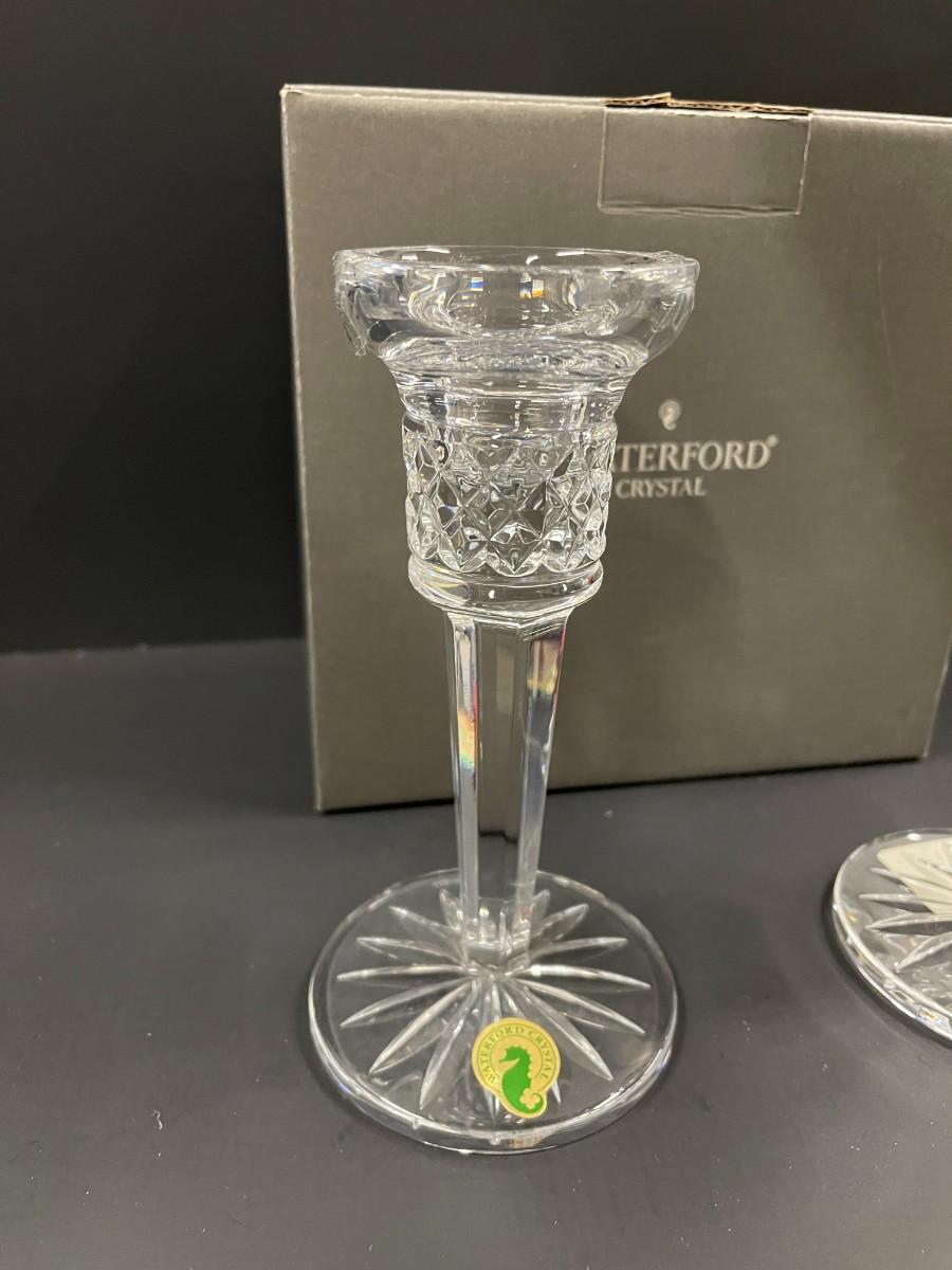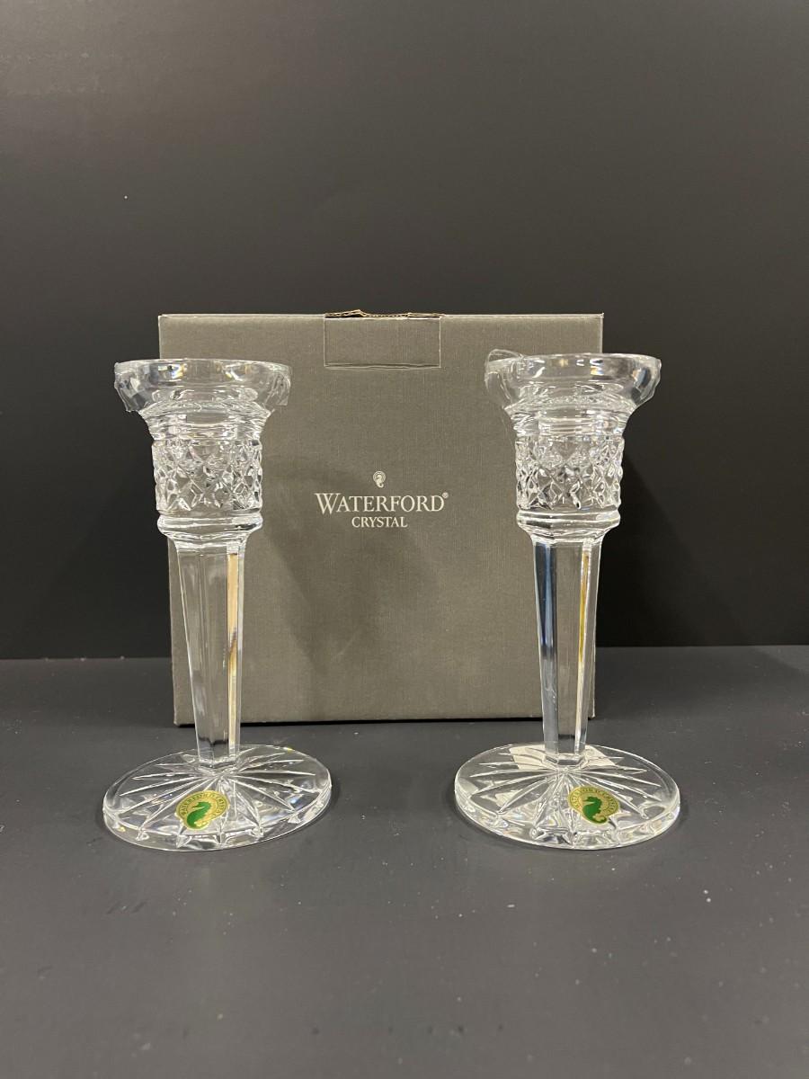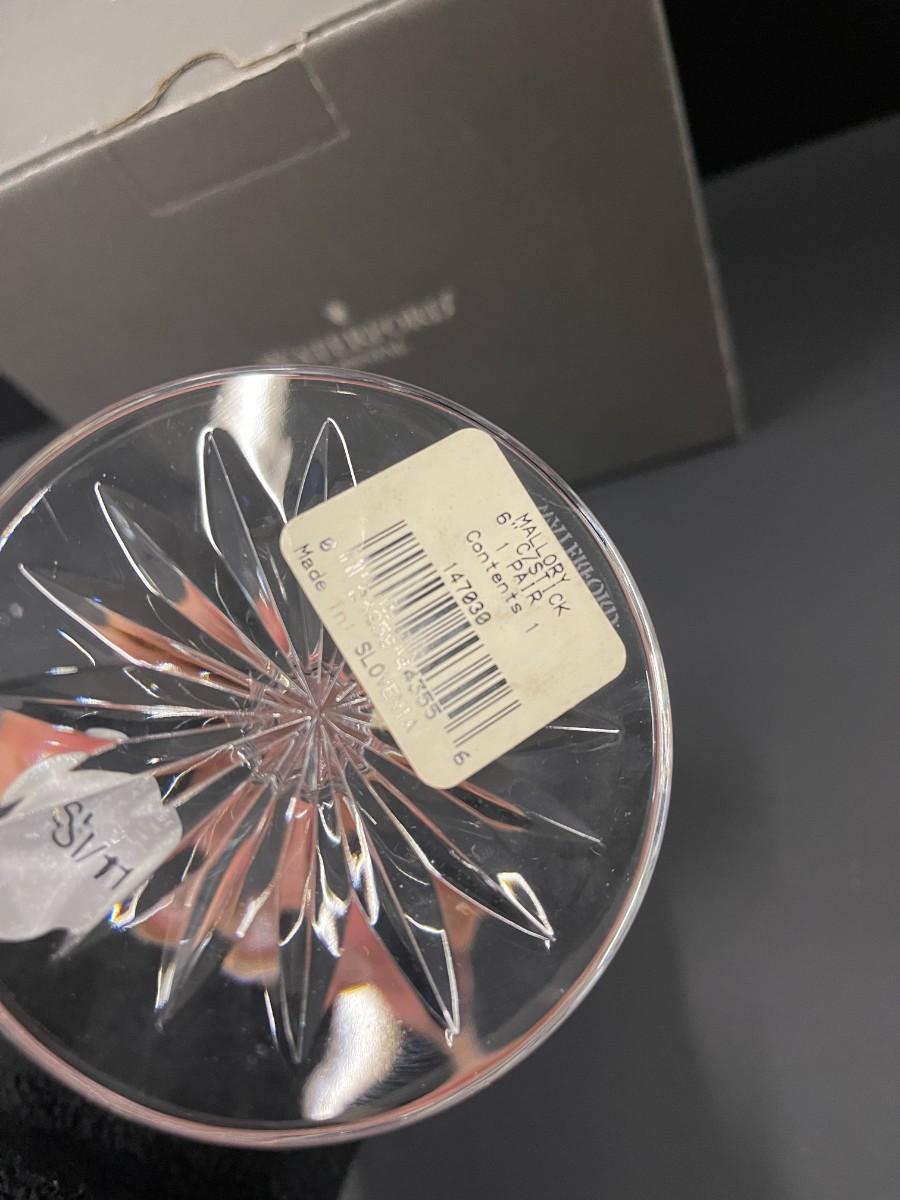 Pair of Waterford Mallory candlesticks. 6". New, in original box.