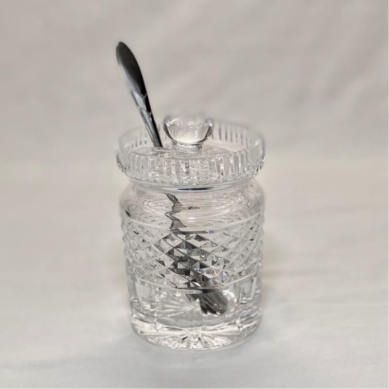 This exquisite sugar bowl was made by Waterford Crystal. This piece comes with a vertical design on the mid-section of the bowl. It is in good condition. Shipping available for extra cost.